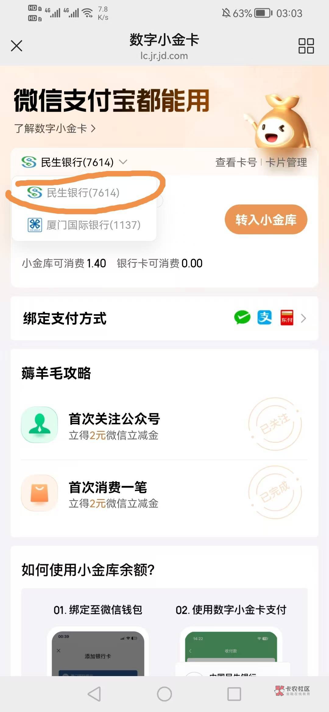 之前不是有人说京东开的这张只能在京东玩理财金融吗,绑不了微信之类的