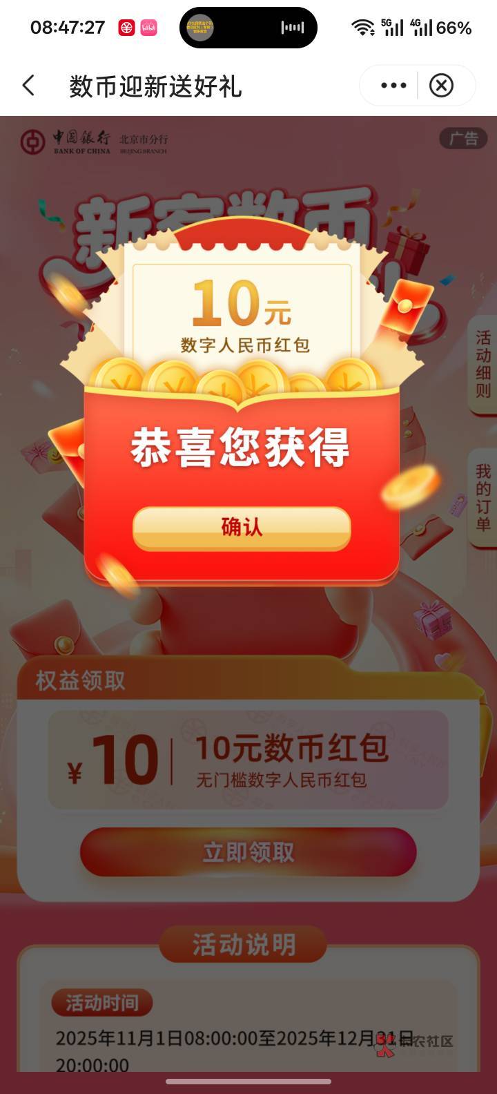 以前领过的不行,你之前是不是找老哥领过北京的数币了