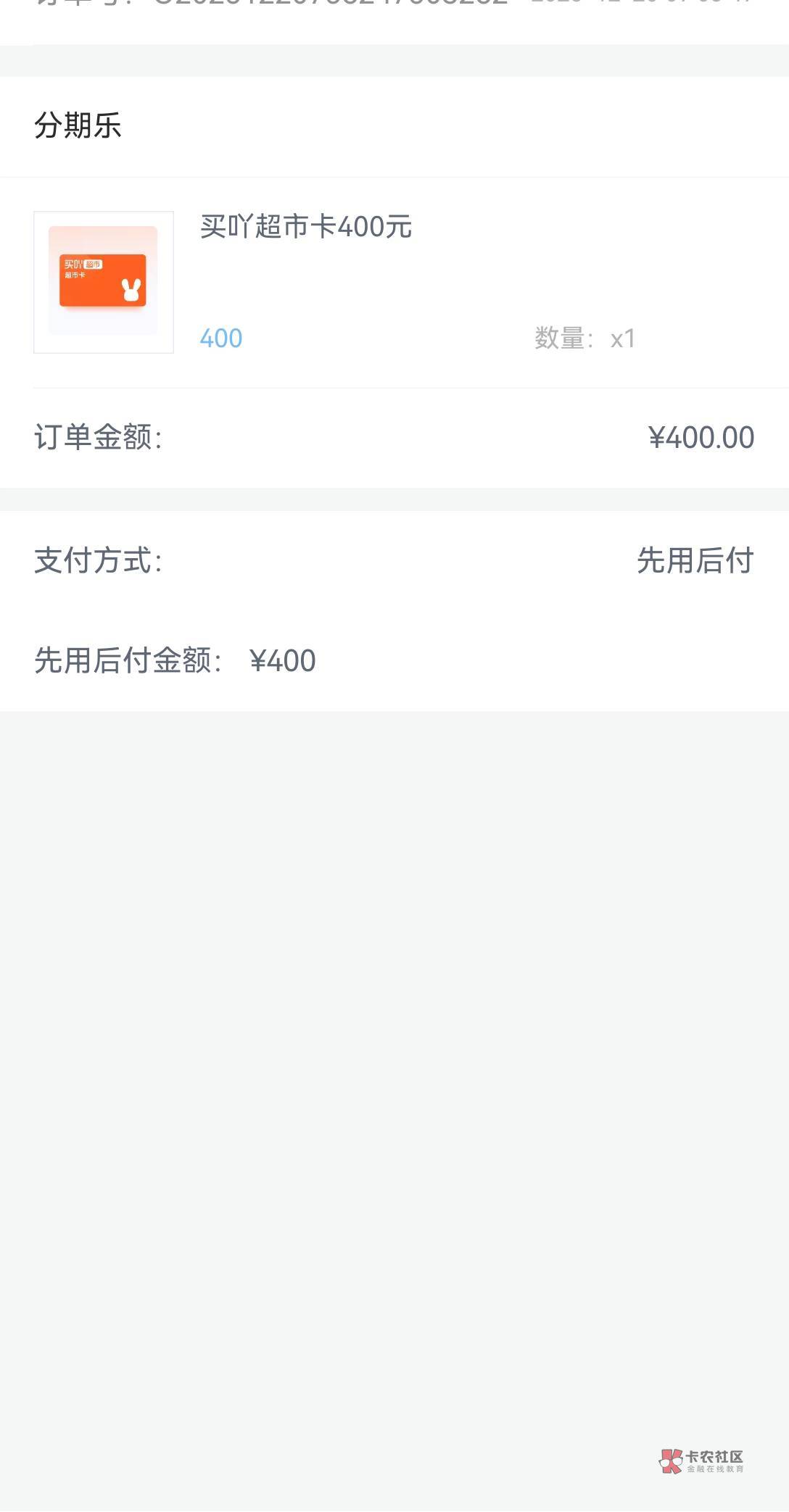 我昨天买这个400的卡就给下了400,又买一张直接下款失败