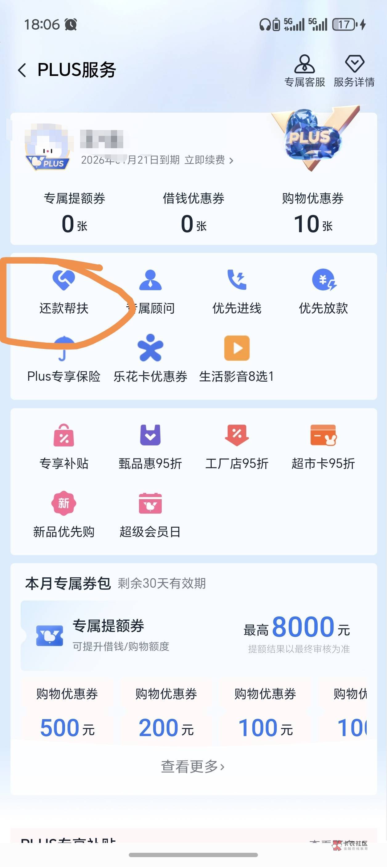 开了会员也没plus服务入口