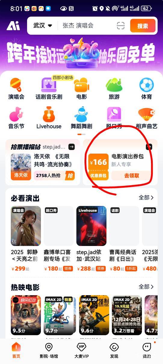 不用飞,支付宝绑定湖南农行卡,在大麦买电影票,减9.8