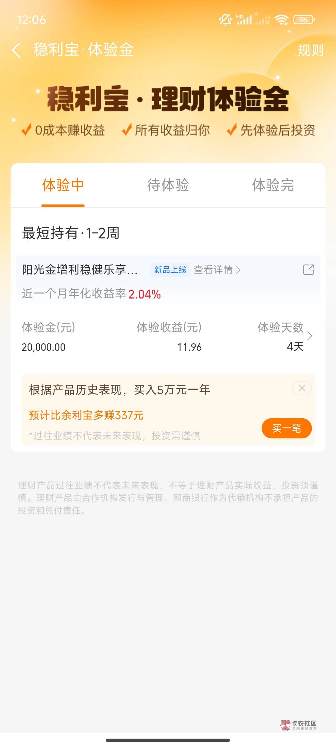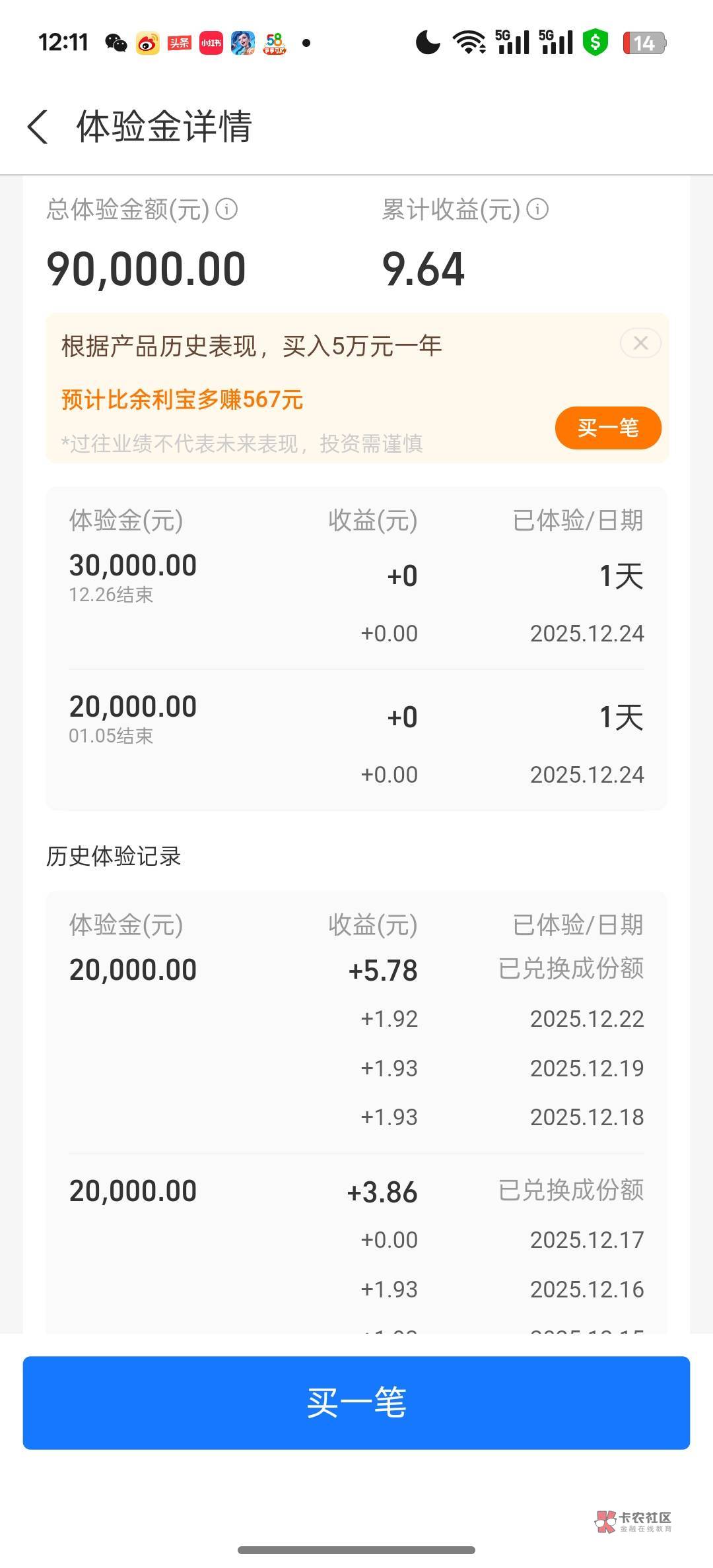 我显示体验为0 我日 5万都没有收益?