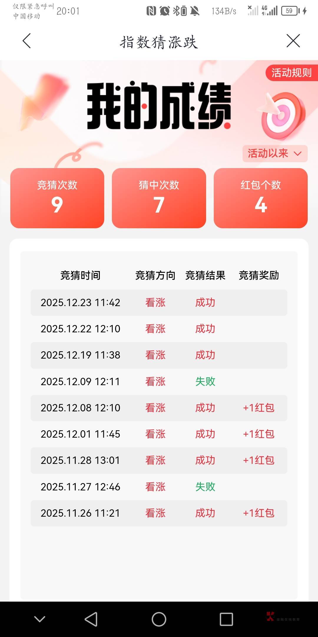 模拟金的奖品里没有黄金,只有e卡,这就是猜涨跌的