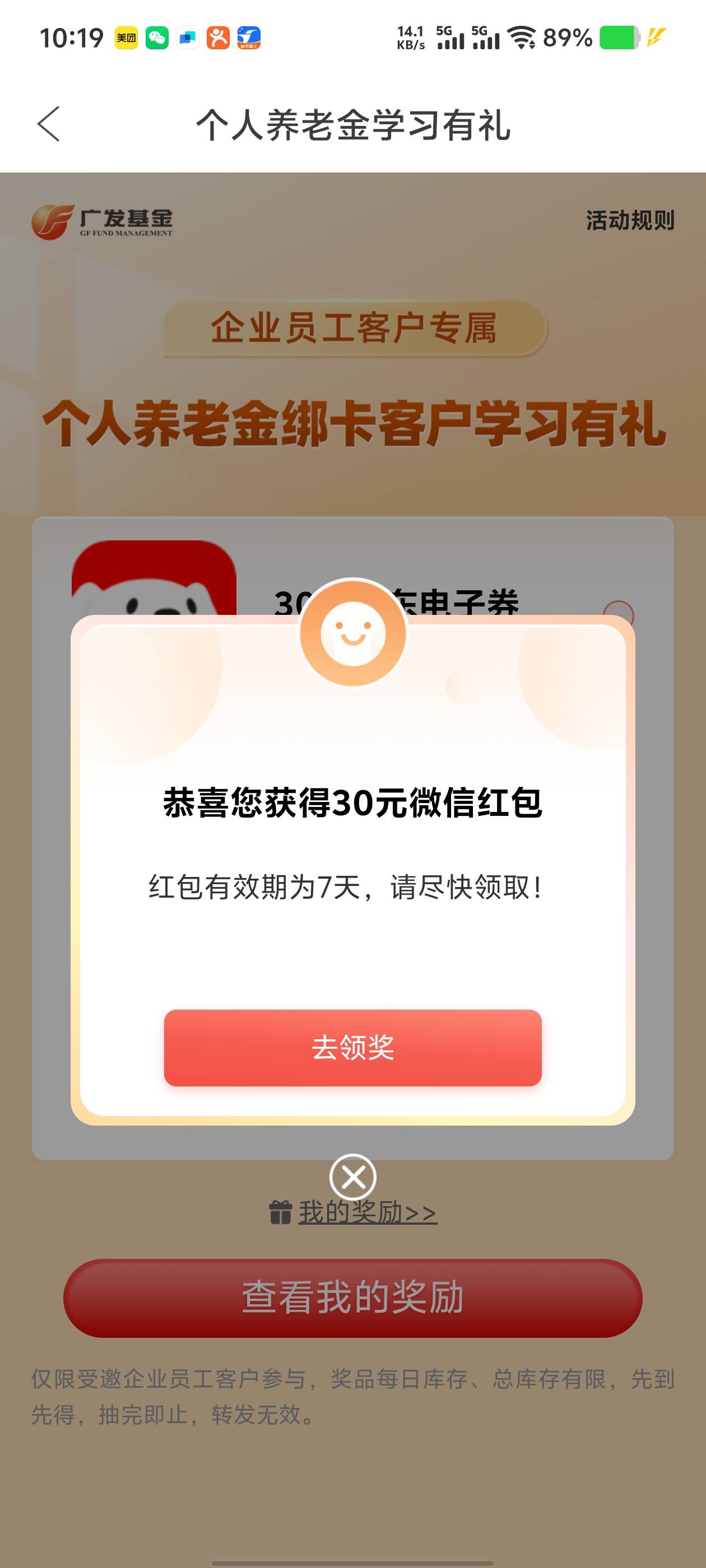 广发基金试试,随便点啦一下竟然能领