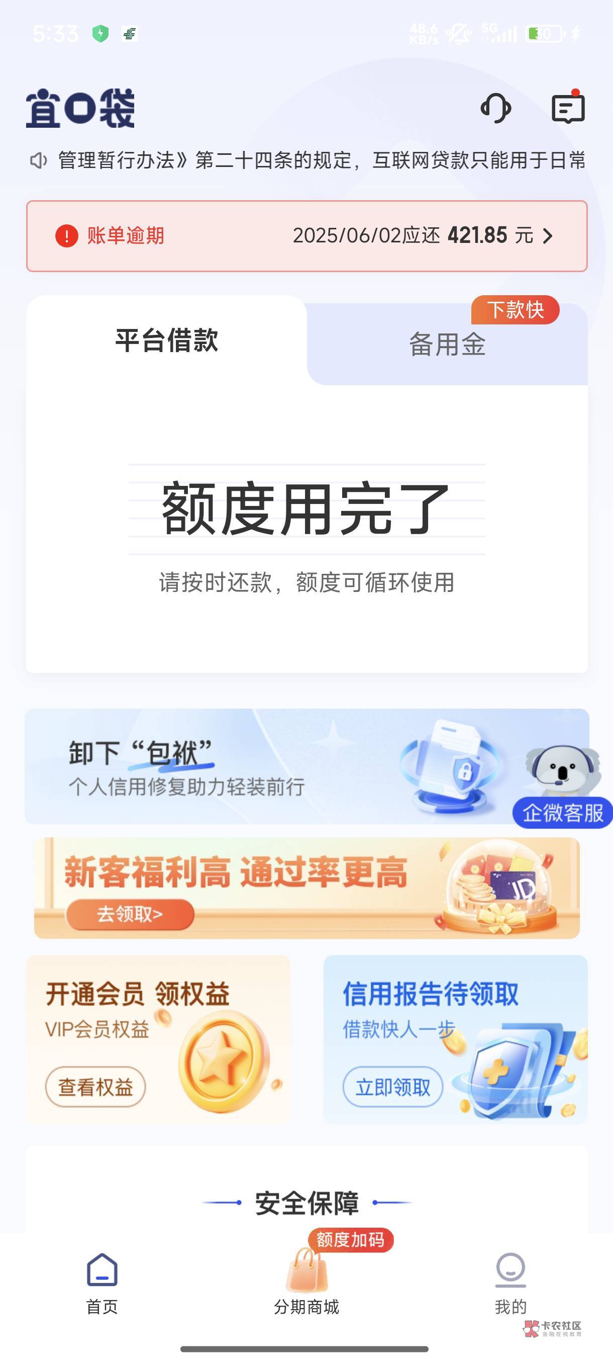 你也是逾期吗?我看他们其他逾期的,首页就能进入专项客服申请额度。我首页啥都没有。