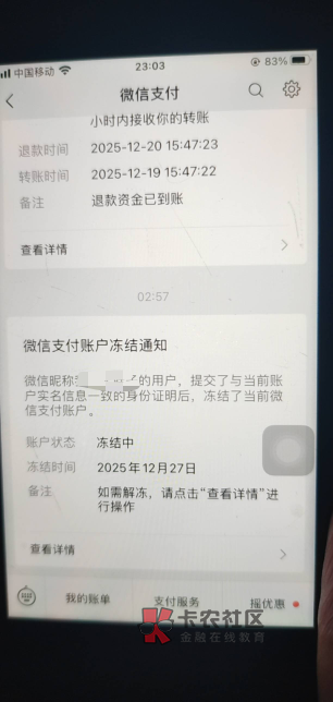 就是朋友的身份证实名的微信,对方把这个账户冻结了,你理解不了估计你是不差的吧,朋友