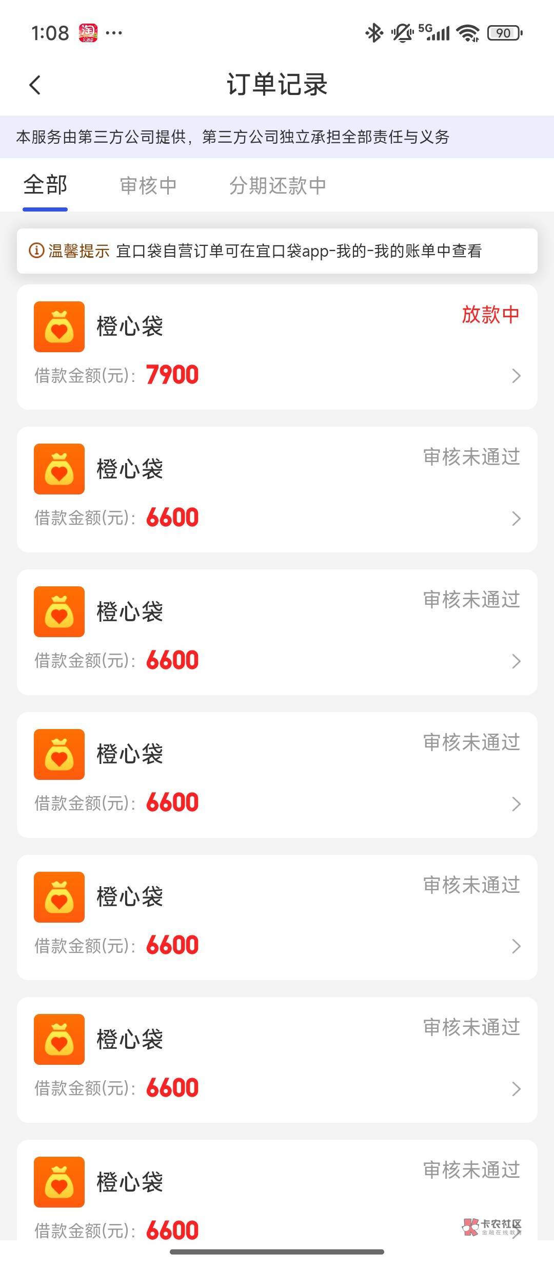我之前20号申请6600到今天还是放款中。刚好早上在这里看到了有链接加ykd客服,把原来的单子取消了。我一直申请一直秒过。在过了几分钟额度变多了我在点就放款中了,就是不知道能不能下。