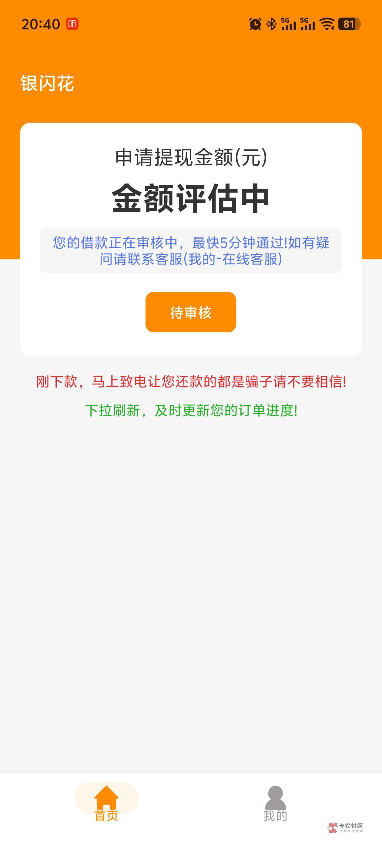 你们这种应该有希望,我填完资料直接显示黑名单了