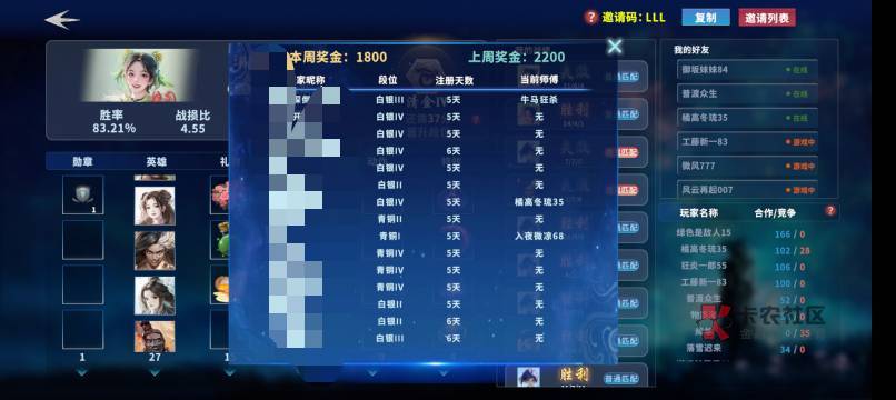 到段位了会弹进群的