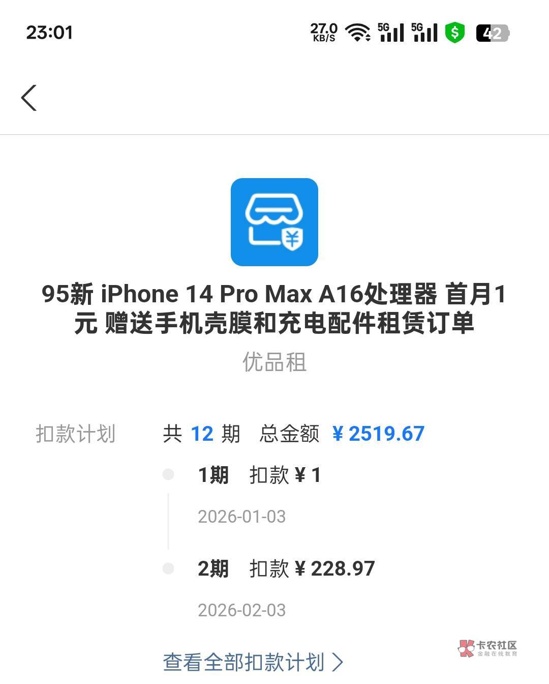扣了几期?前期花了多少?