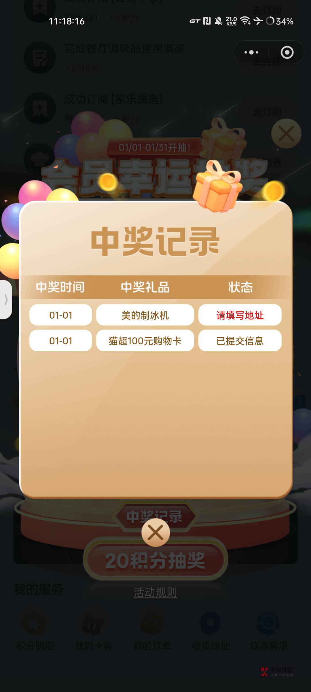 家乐会员中心 下拉左下角积分抽奖
