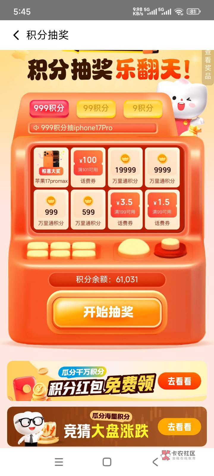 我后面博了3000积分全是腊鸡券不敢抽了