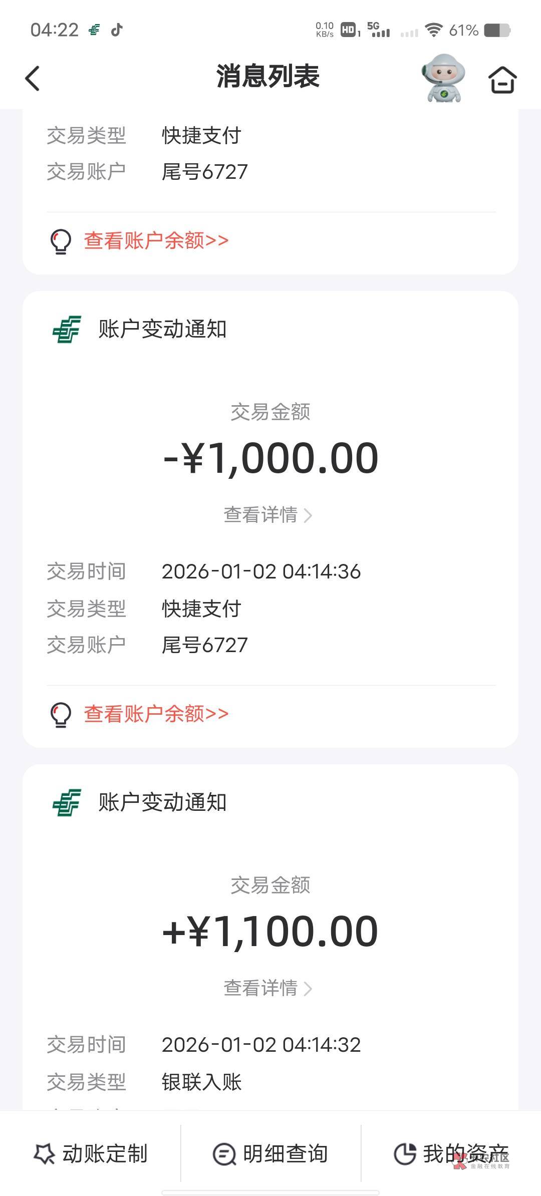 我也邮政卡,你没设置对,我第二笔也是今天凌晨到账一毛没扣,第一次也是没设置好让扣了五千