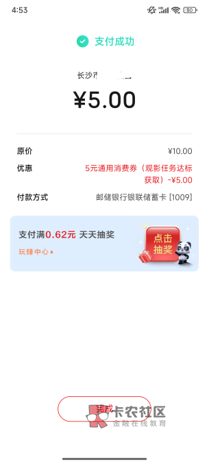 用领的湖南电影券买完电影票就能抽了,玩赚中心