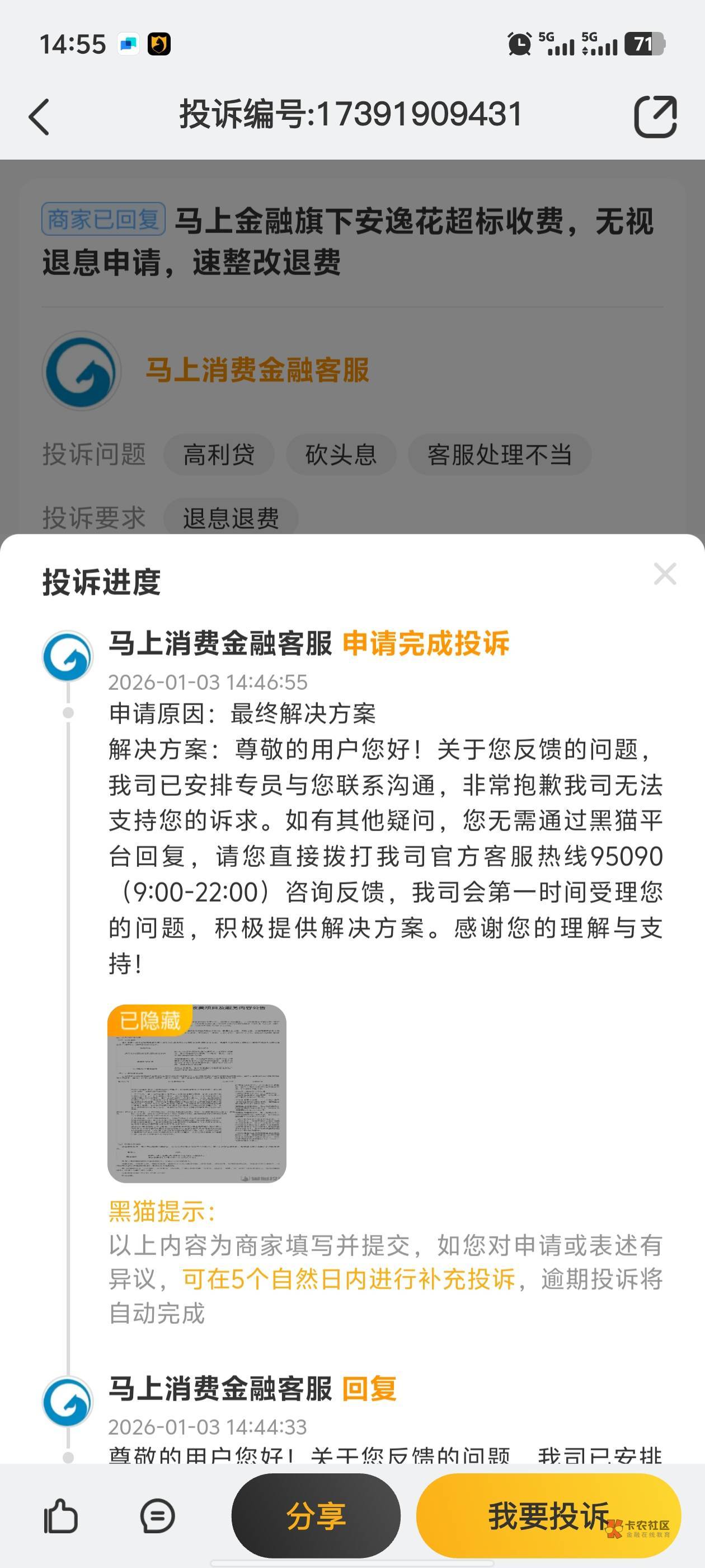 我投诉宜享花那个优赛的额外收费他们头也铁咬死合法不退 打算明天等元旦假期结束了向信访和银监投诉去 估计黑猫对他们来说没啥力度