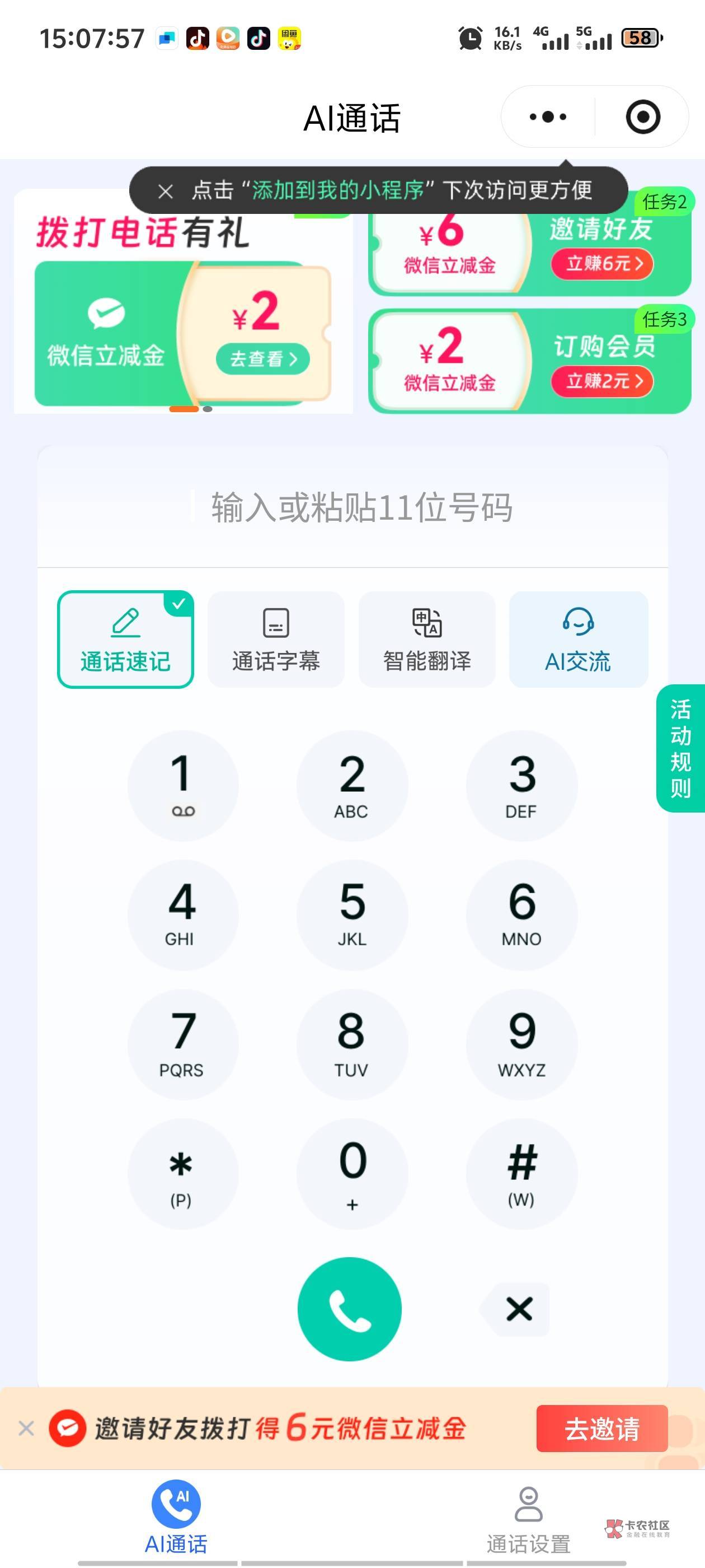 我没打电话,收短信登录就关注