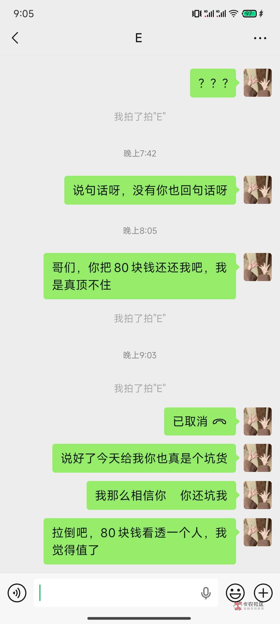 又挂我?几十块钱一直叫叫叫,不还了