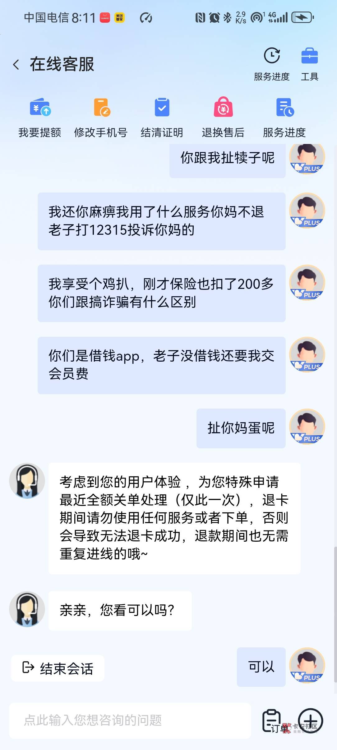 我就骂他们,专门搞诈骗,然后全部退了