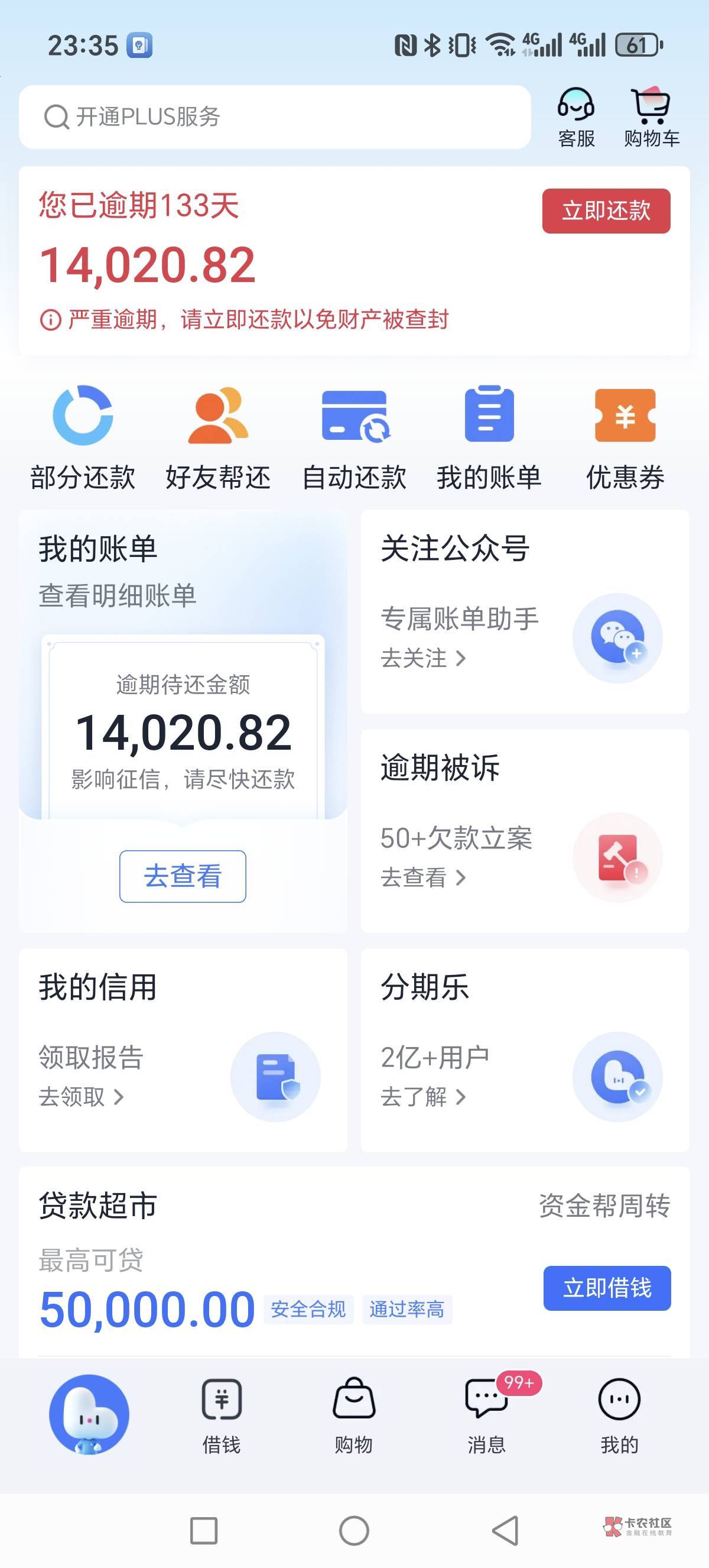 分期乐购物额度三千多逾期了四五个月了,不上征信,