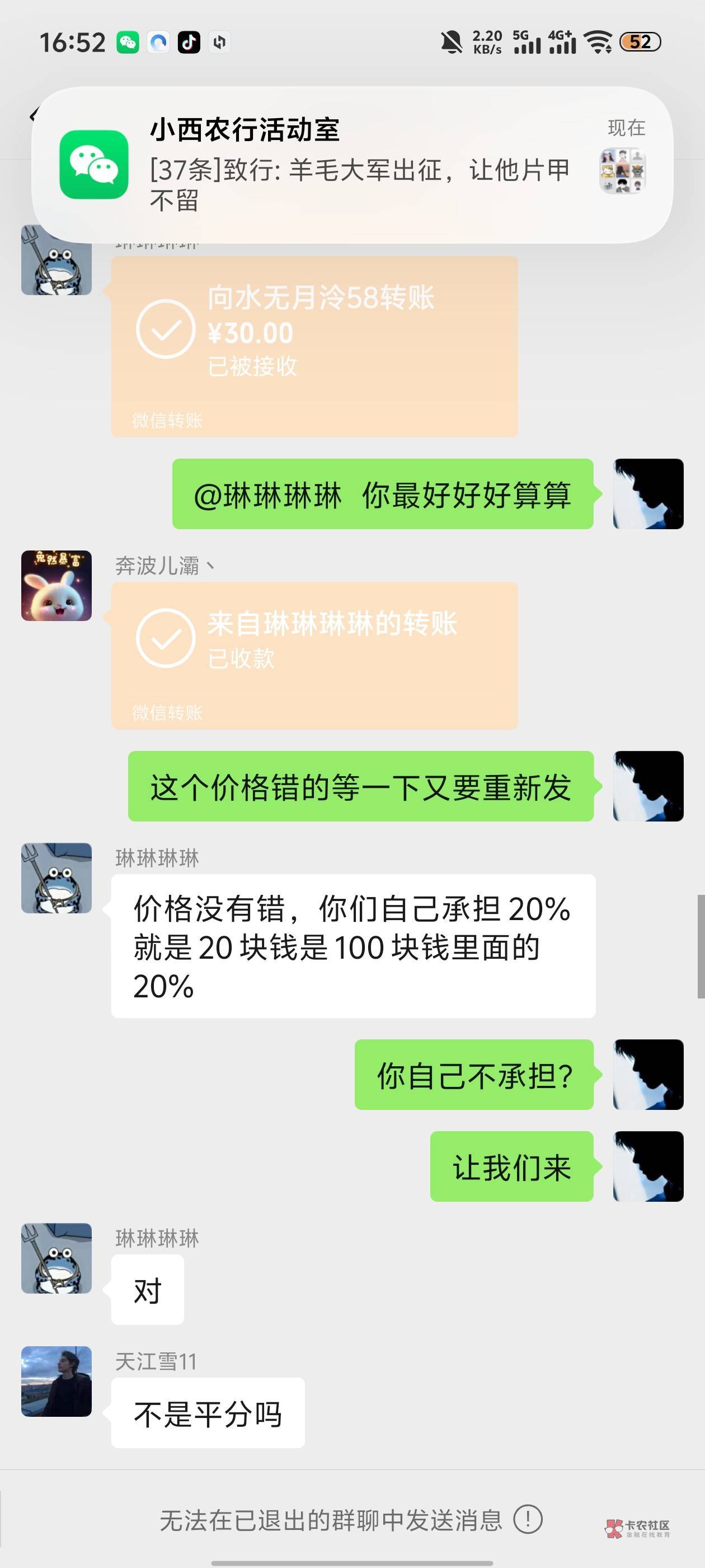 不过税全让被拉的承担就过分了,我都是总收-提前结清/平均人数发的,每个发43