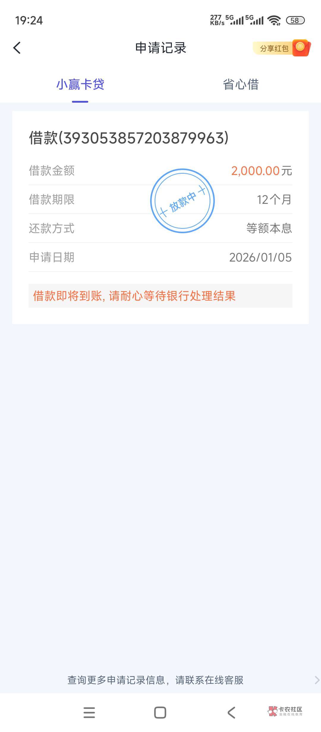 已经出了,但是我没借了,我只需要2000过度一下,月底我就提前结清啦