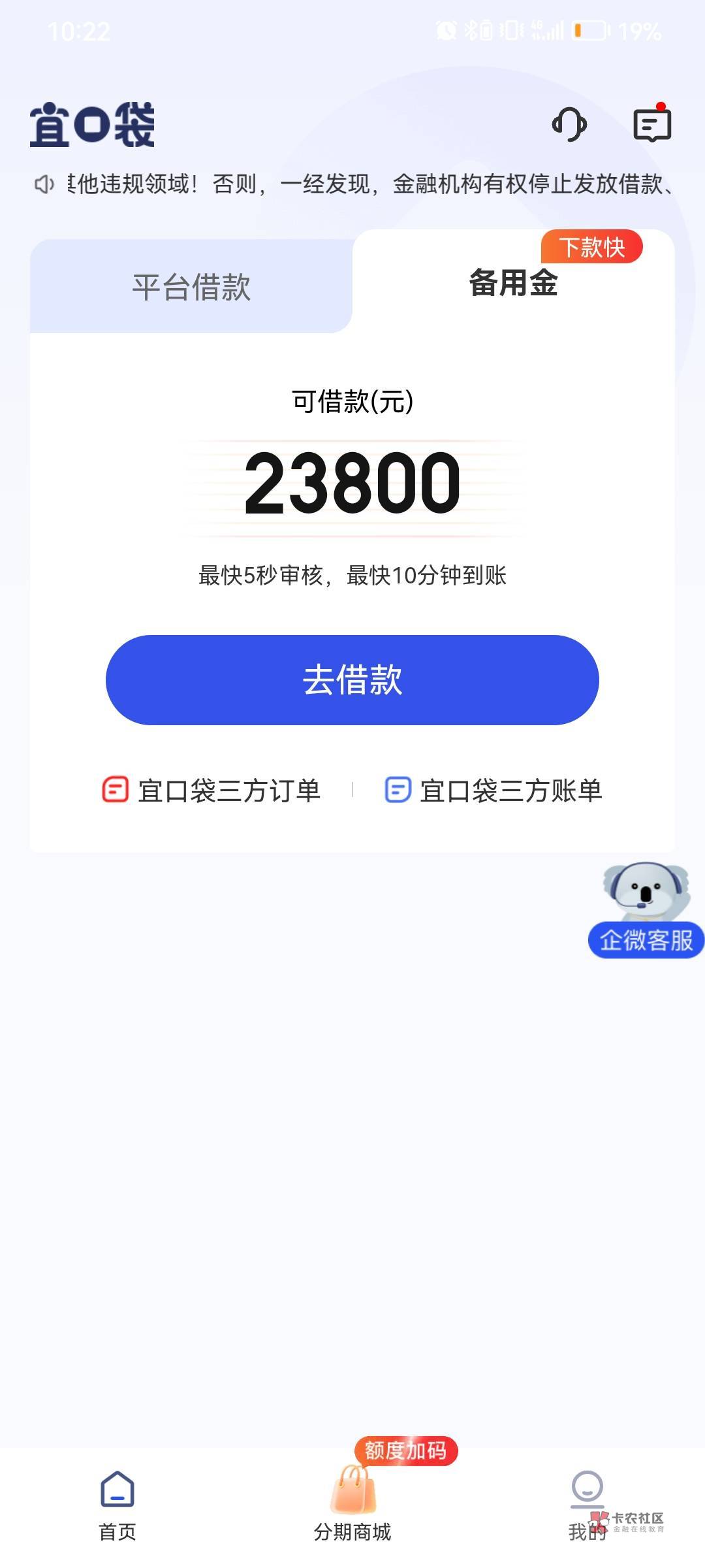 ,晚上就出这个备用金通道了,让他自己给额度,还是点,之前出现几次点了一会就没了