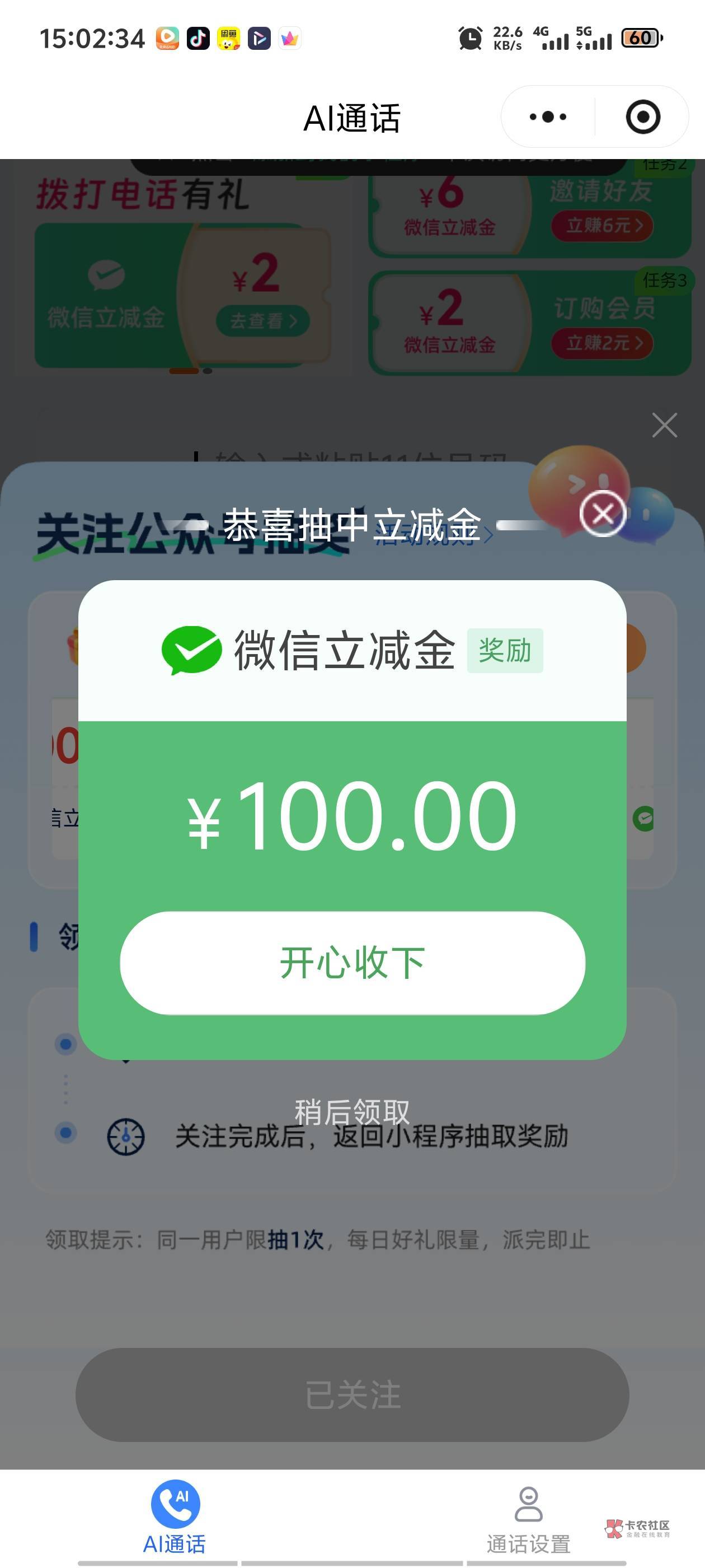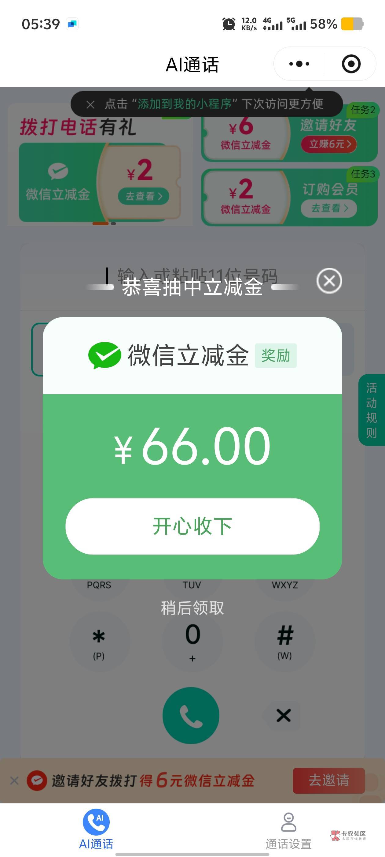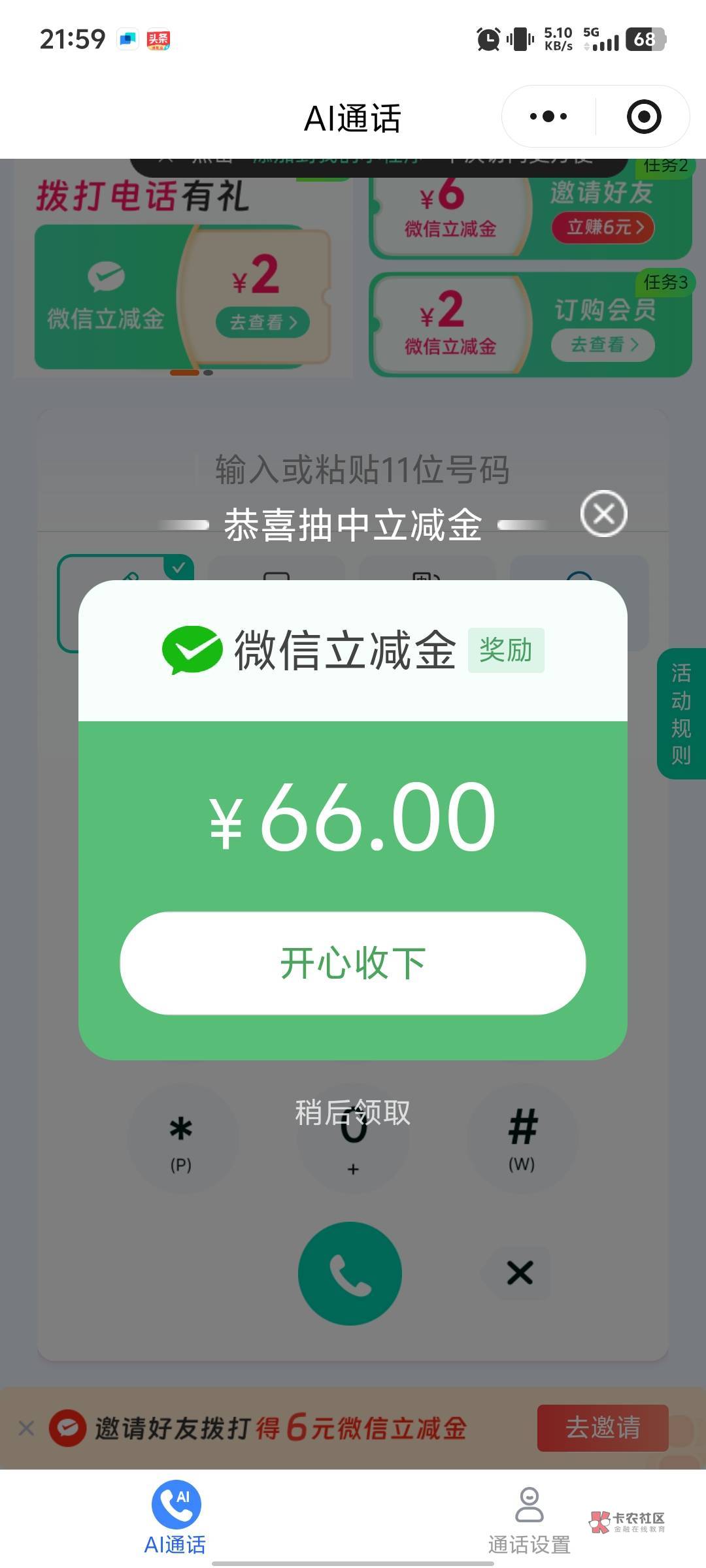我任务平台刷到的任务,我看他介绍就是抽1。本来寻思做个任务结果中了66