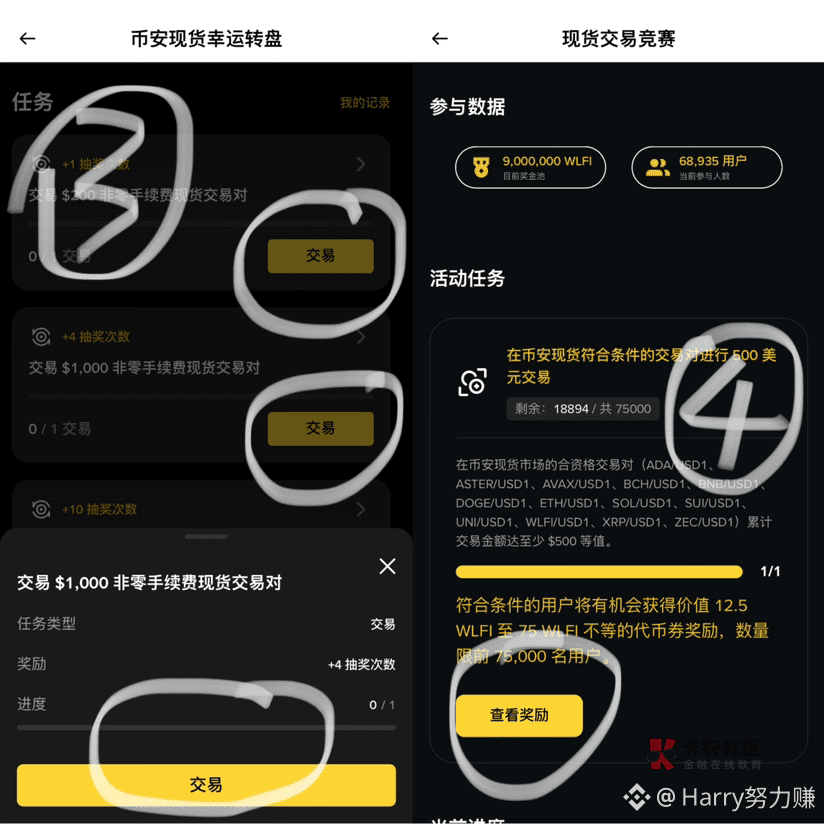 现货活动,刷500百分之90概率是保底12.5个WLFI价值2U、刷1000大概率给30来个币、