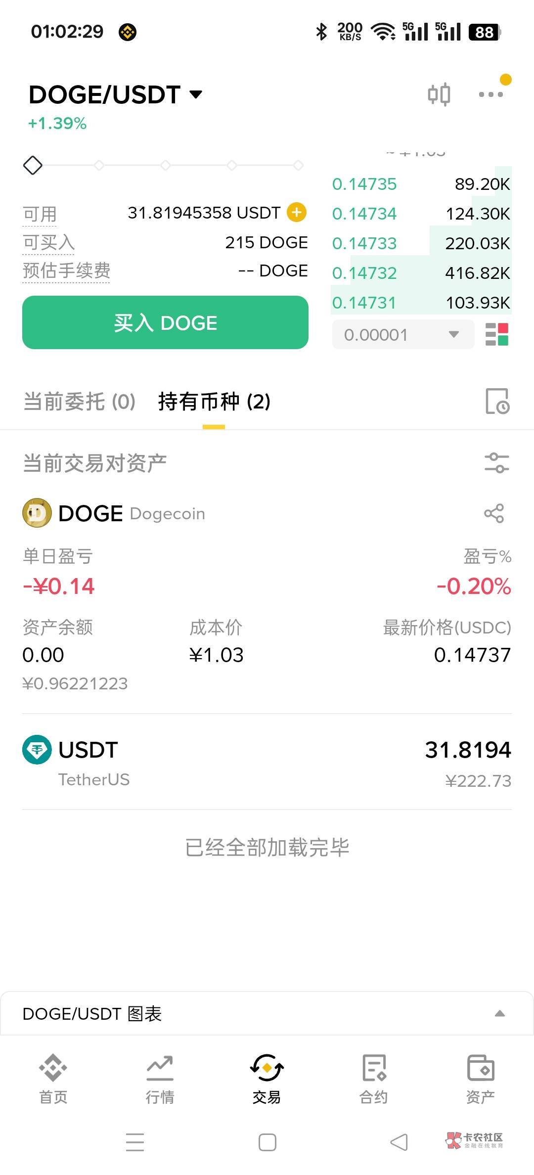 这不对,一手就亏0.14,50手,这不得亏50×0.14=7U?