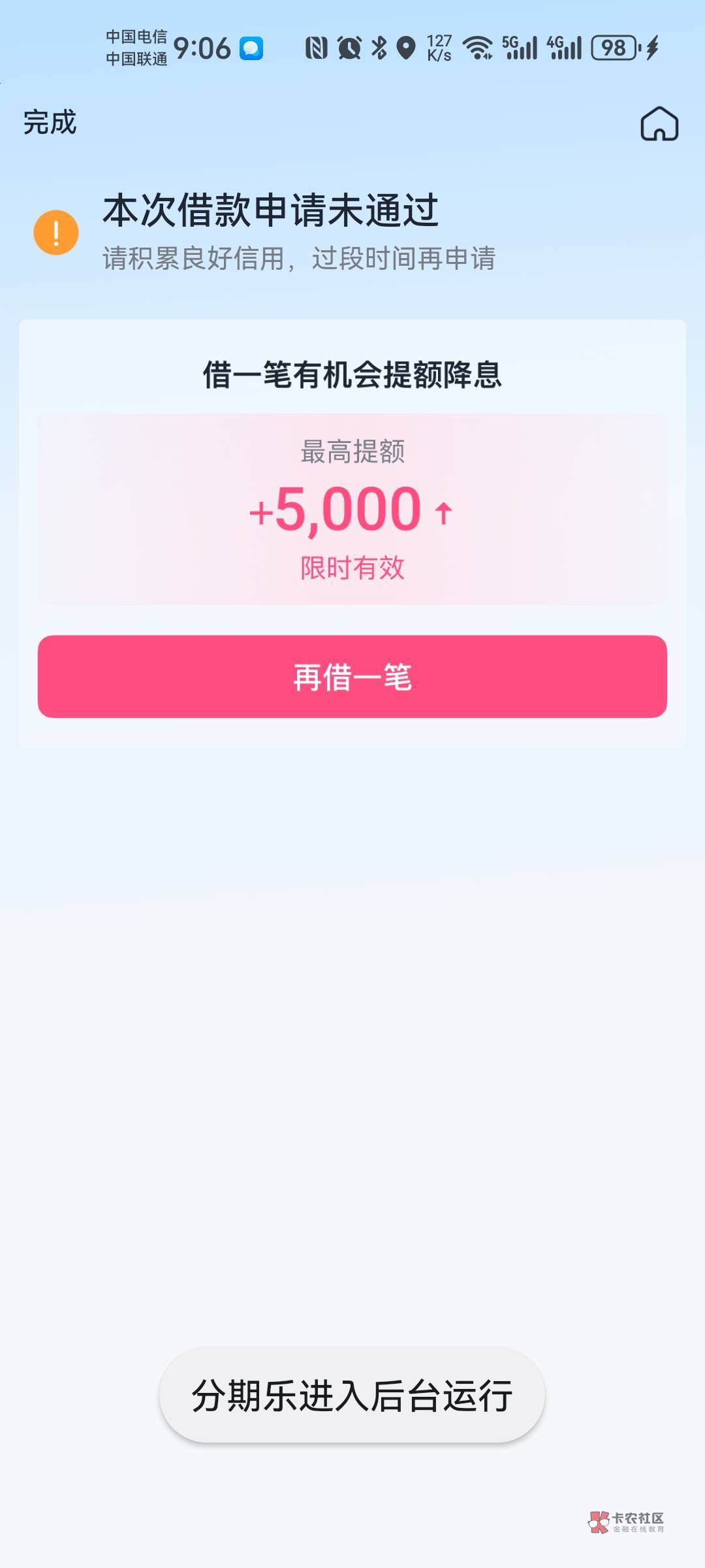 你有购物额度吗,我借款5000但是购物申请不通过