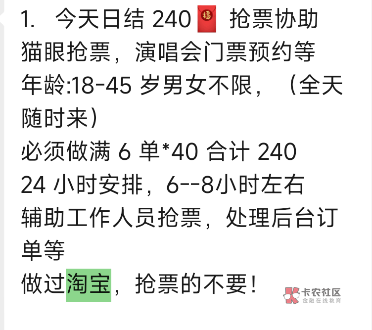上周去了一次,问我做过好评啥的没,抢票啥的没。说的用他们账号注册zfb,然后增加什么浏览量,说大概一小时一个号,做完注销弄下一个,总共6个。当是我宝子自己占用三个,没弄成回来了