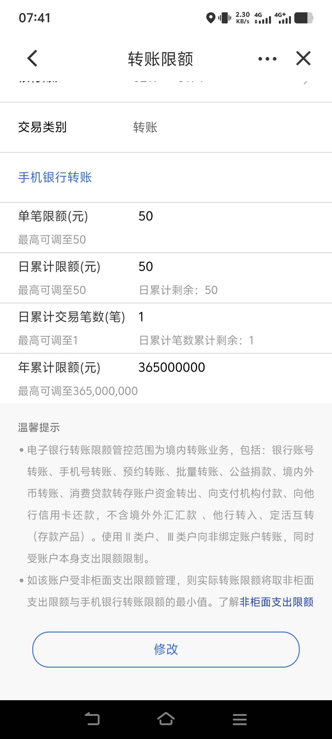 建行,调限额了(第一笔是农行,自几能设置限鹅)