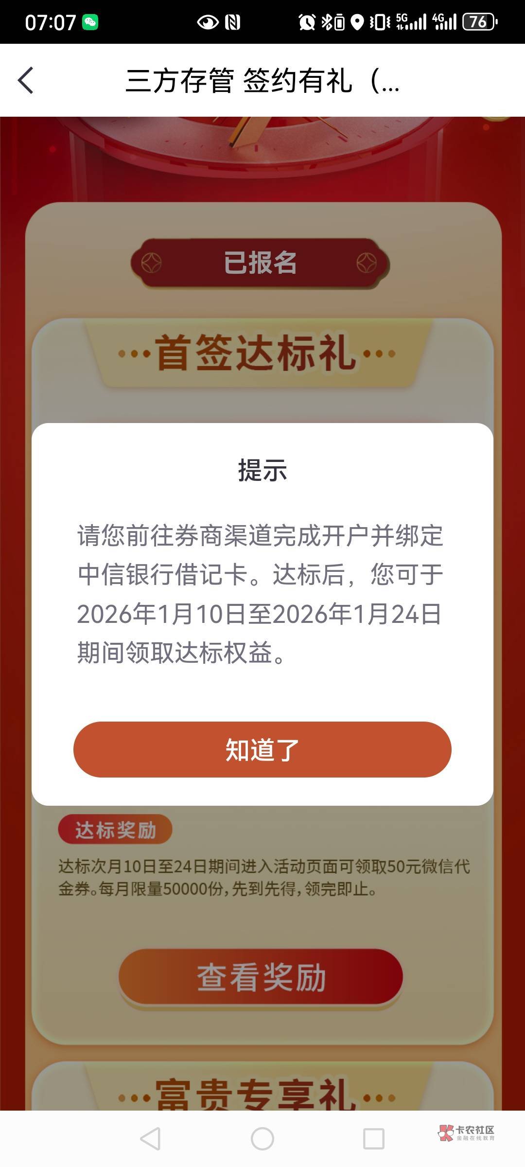 我一类,绑的中信建投证券,留了100块,领不了,确实没意思