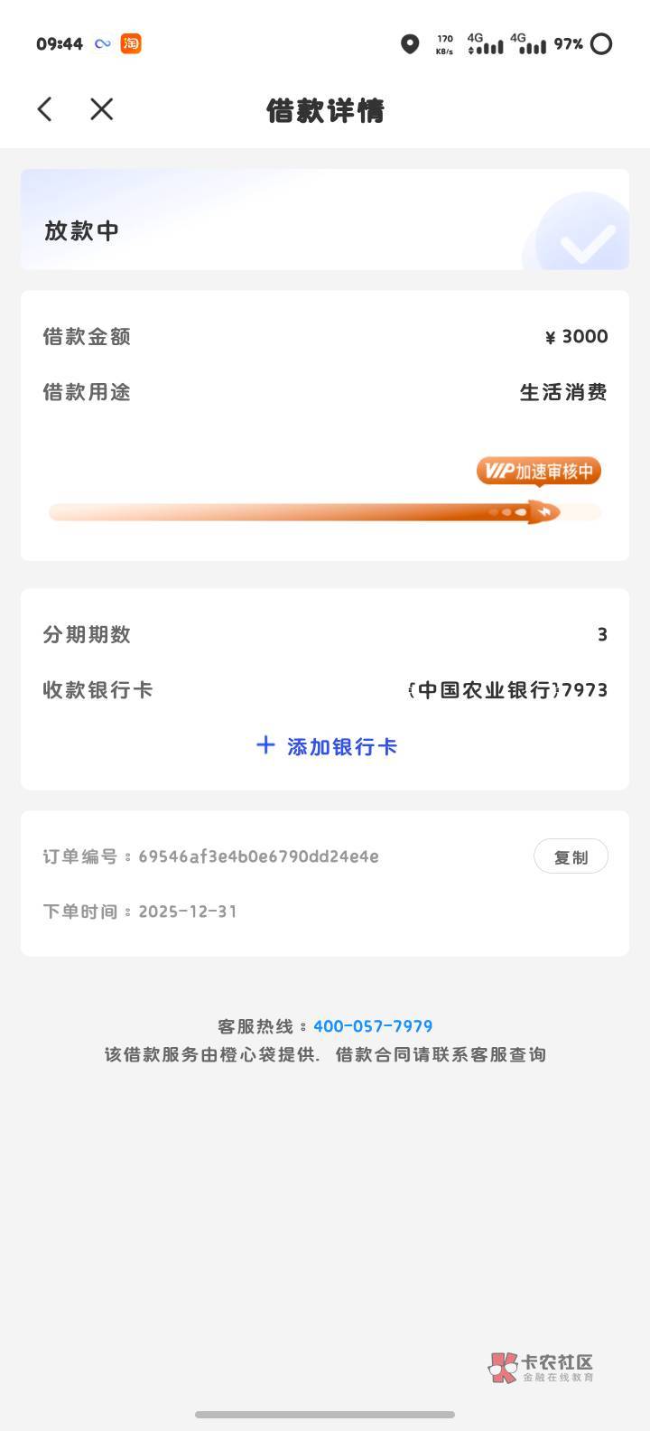 橙心 从申请到放款多长时间?