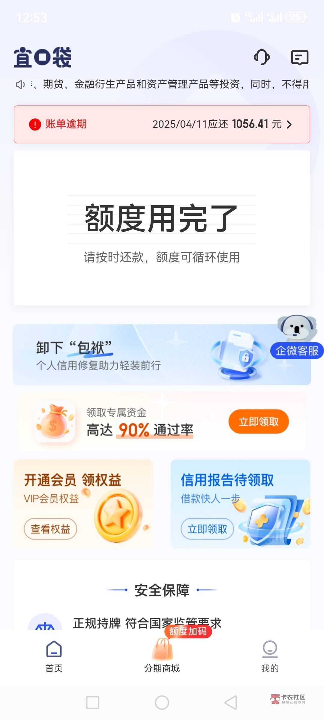 我现在也是一样,宜口袋没额度了