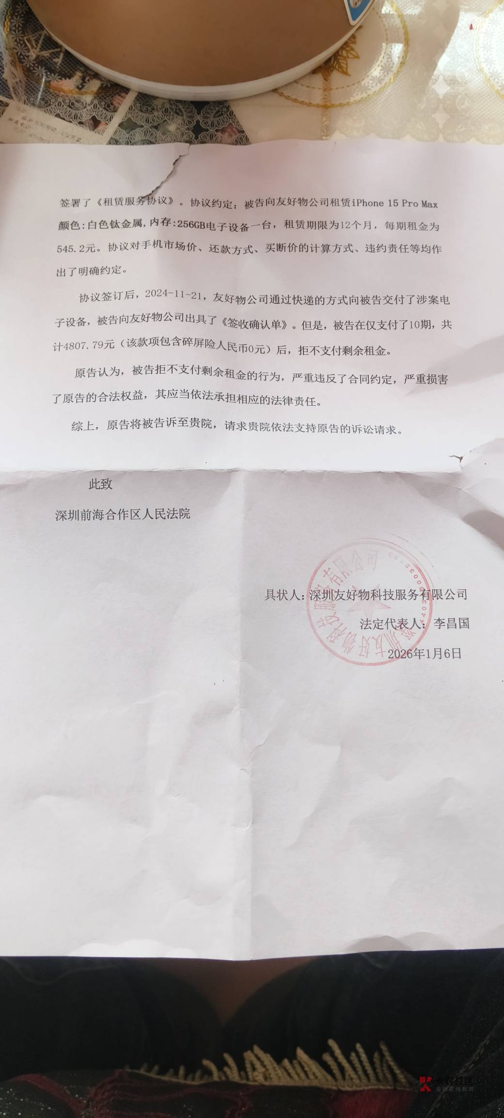 所以这个不是法院发的,而是友好物公司发出来的,对吗