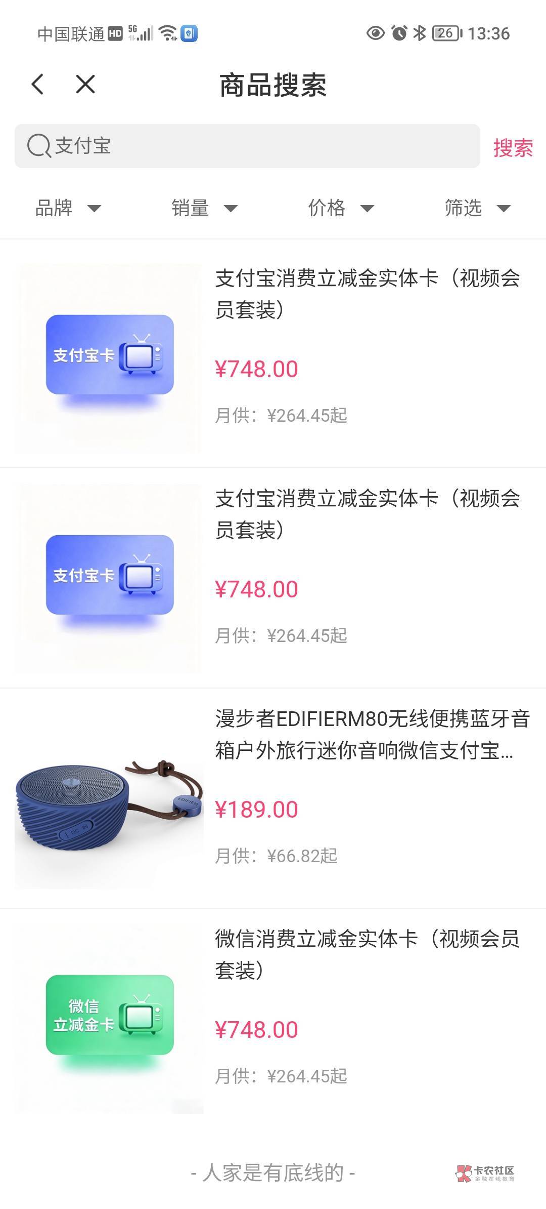因为你购物额度只有一千 你还想买一千五的东西 你只能买748的卡