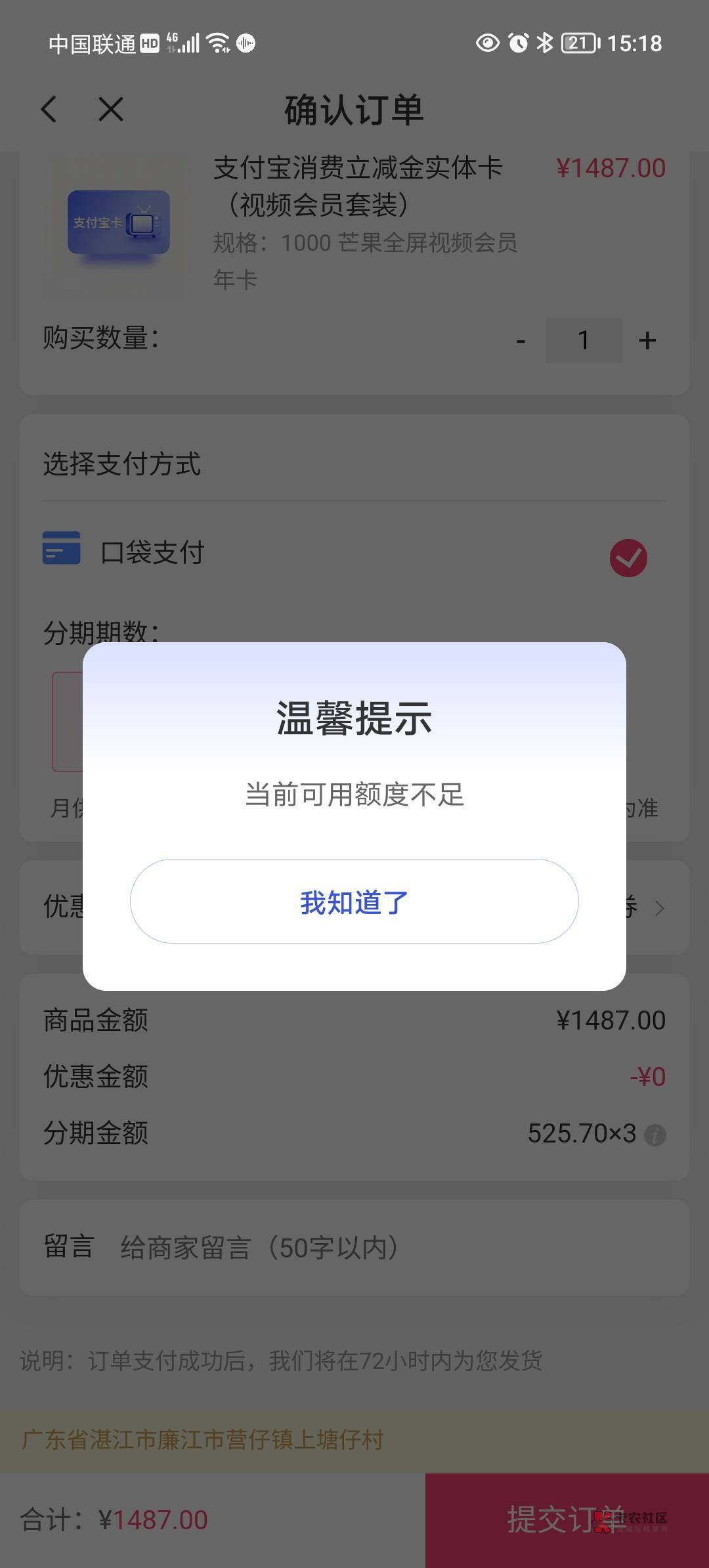 卵哦 1000额度只能买500的