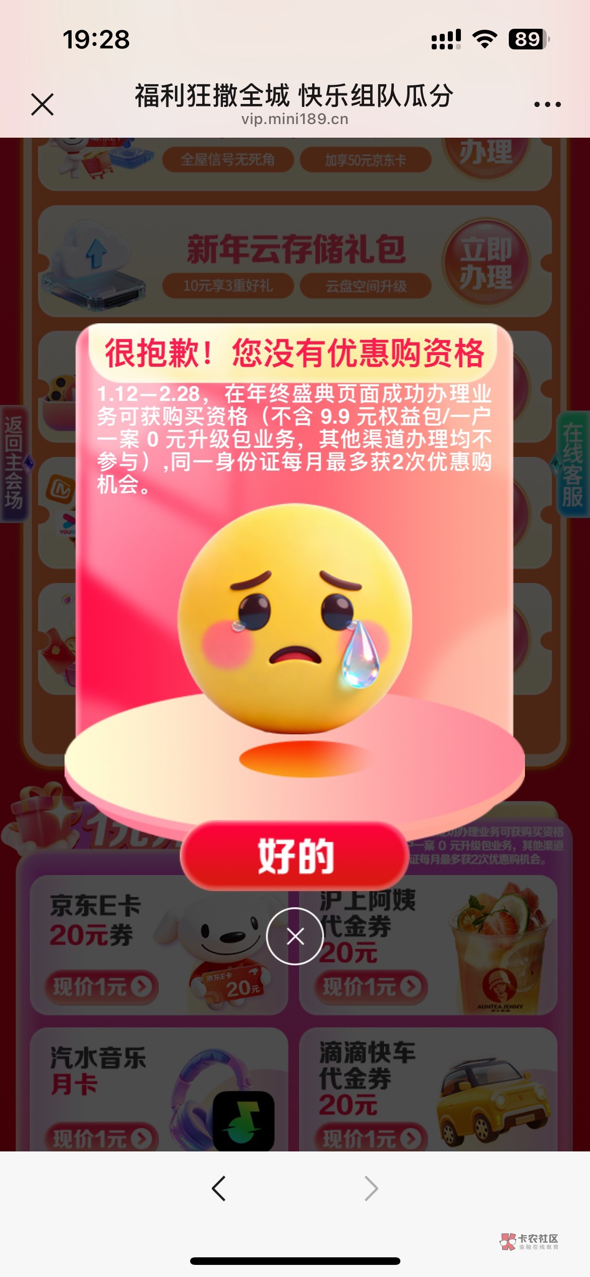 就这个9.9权益包不符合,其它都行,部分办完后延迟十几个分钟才给购买次数