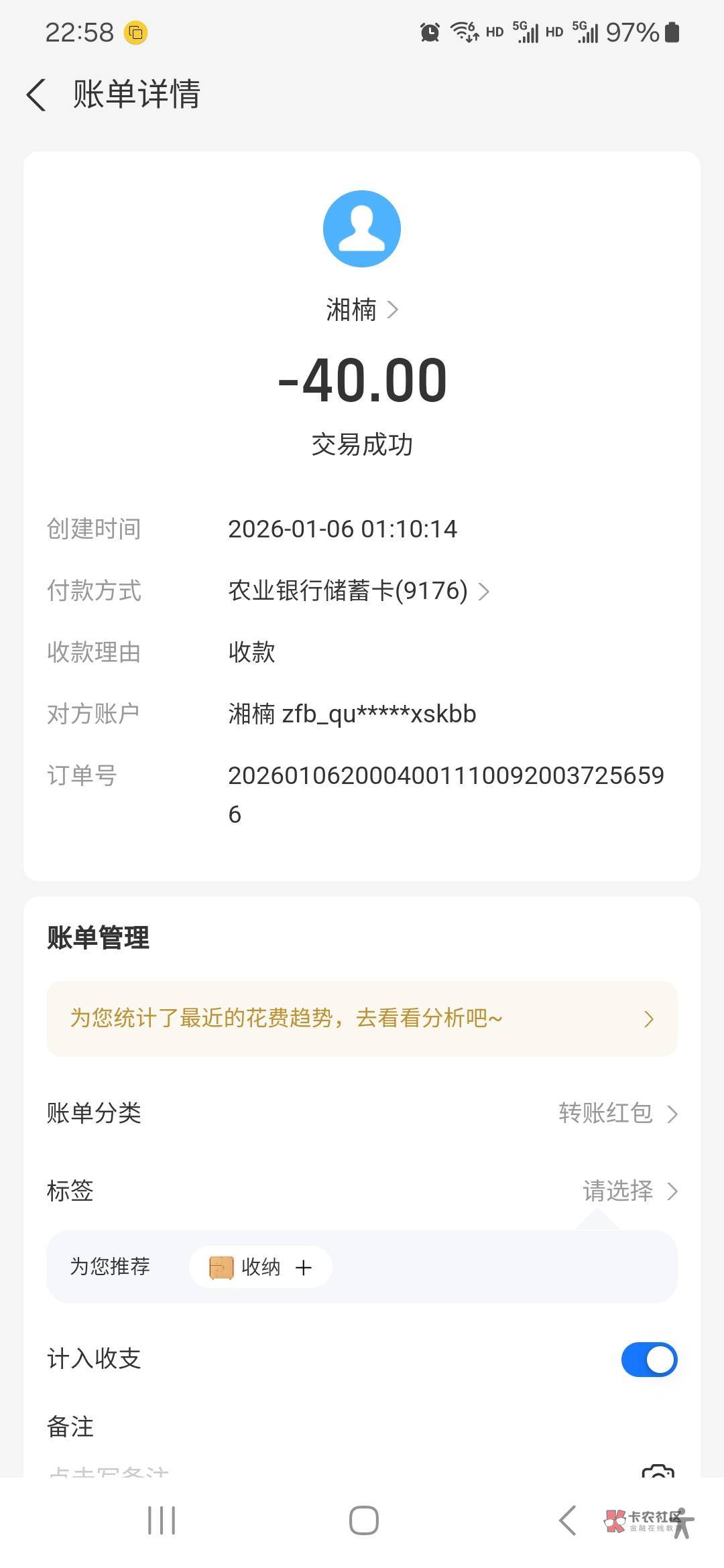 上面人家转账的40是不是给你了?