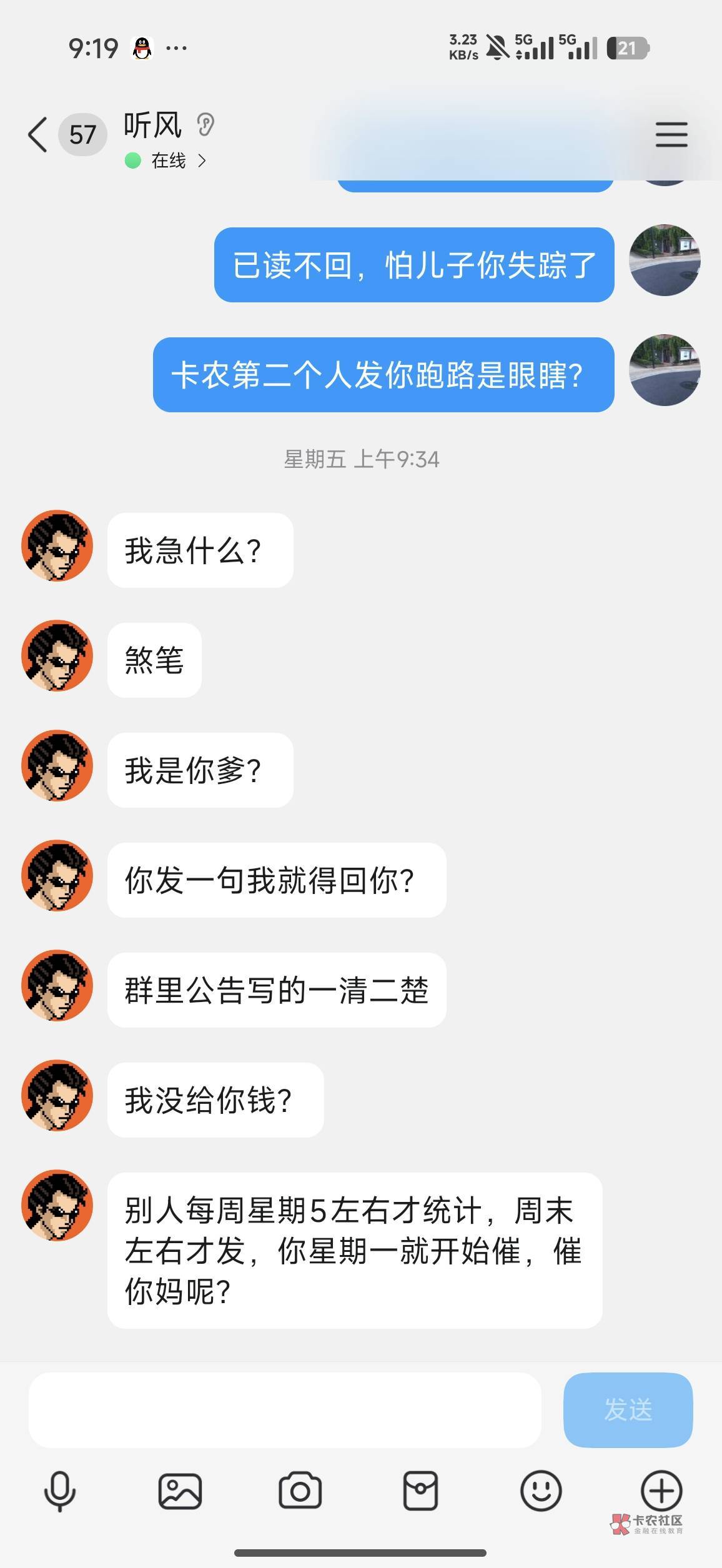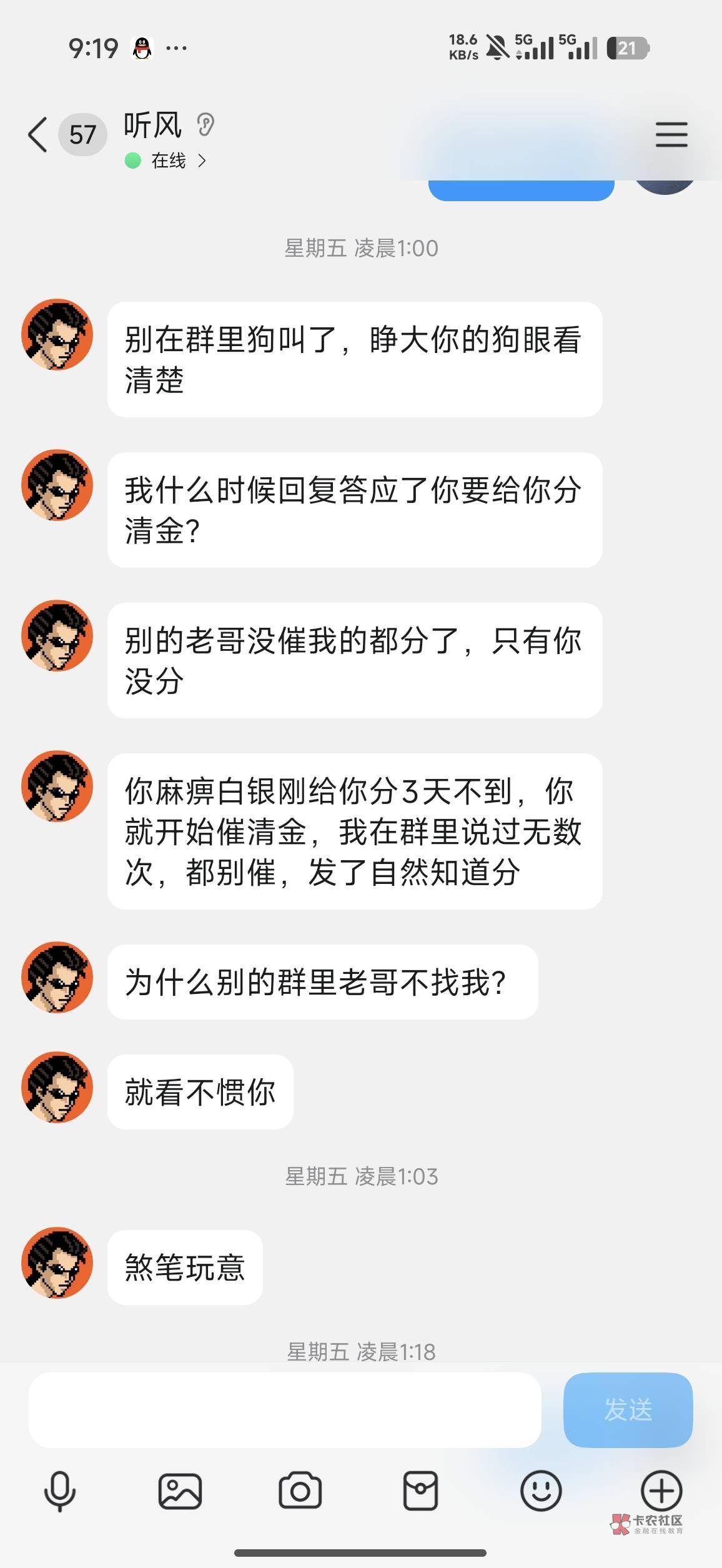 没给一直在扯皮,我直接喷他了,他群给我t了