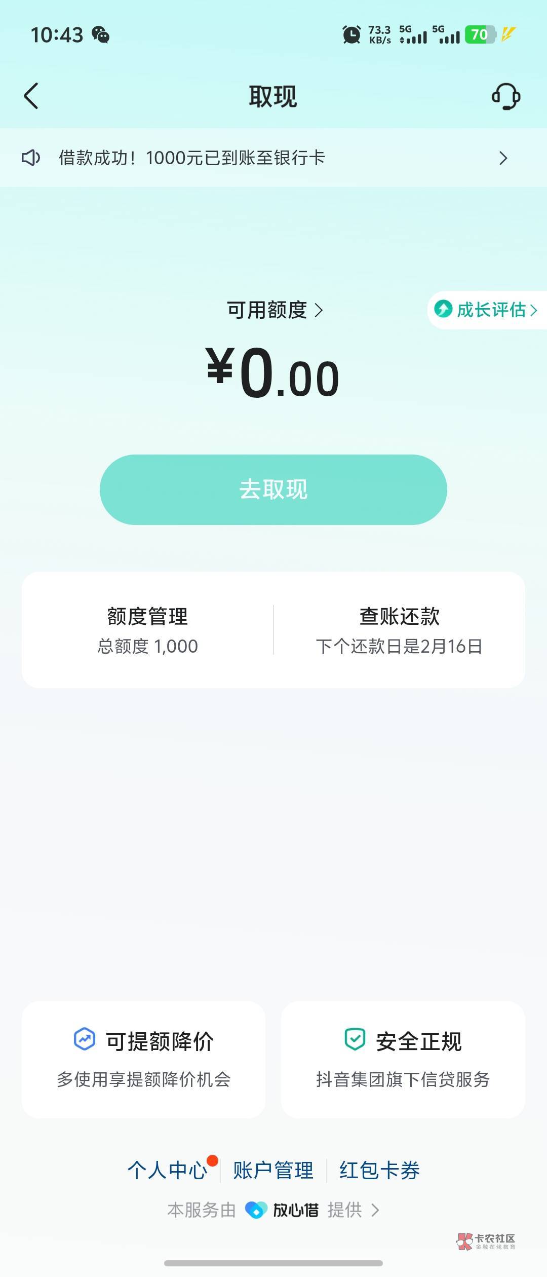 我去,刚借完1000突然给提升额度了