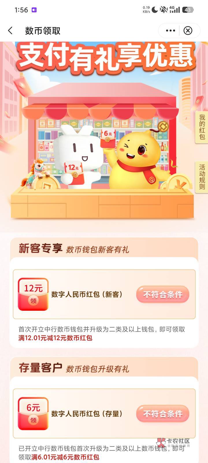 正确步骤是注销手机银行,注销钱包二类,然后的话。通过数字人民币app开通四类,然后到中国银行升级二类就可以领到