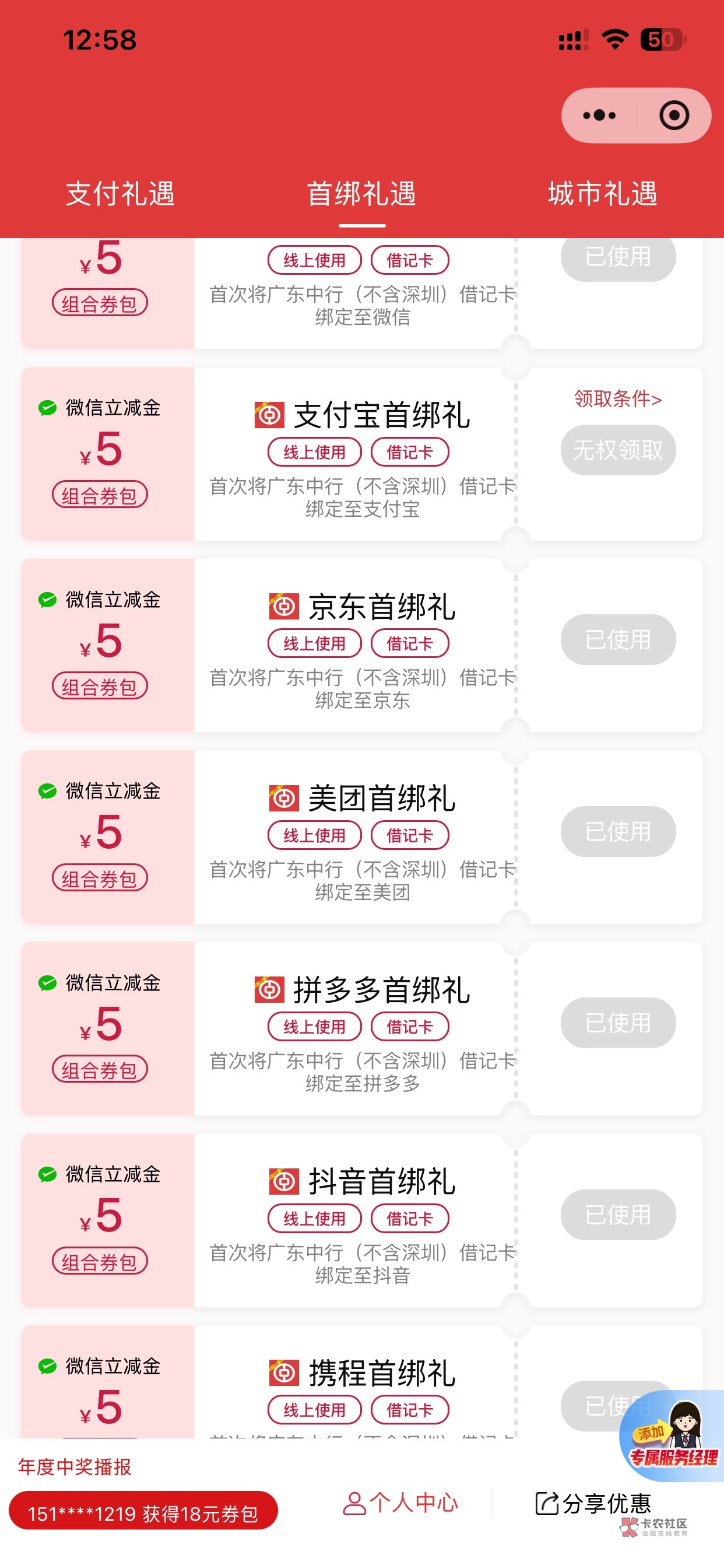 我也没有一键绑卡,单个app绑的星期四还没新