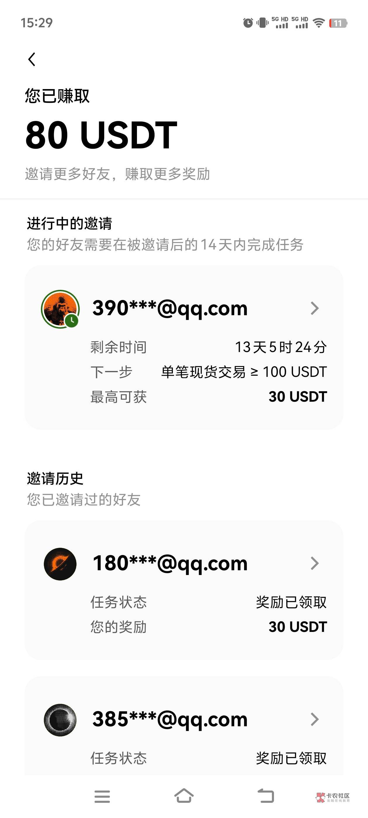 我已经赚了80u,之前拉的3人,不是抵扣卷