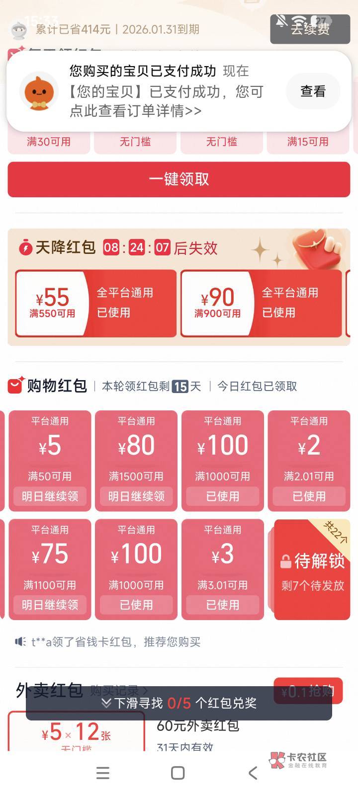 不是每个号都有的,这个省钱卡也是特邀的,而且有的特邀的还没有1000-100的,我有个号开了好几天基本都是1600-90,就是不出100,只有一个号出
