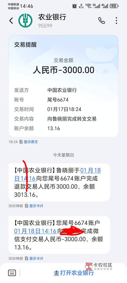 我去,你还真给他钱了?那么多人给你说骗子 你都不信,,我昨天是不是给你说了?,现在骗子多得很,,他搞到你信息了,知道你哪天下的款,YHK尾号都能搞到,,你以前下的那3000,是其它地方下的,你可能都还清了,,然后他反正能骗一个是一个,,想不到的是居然给你退回来了。