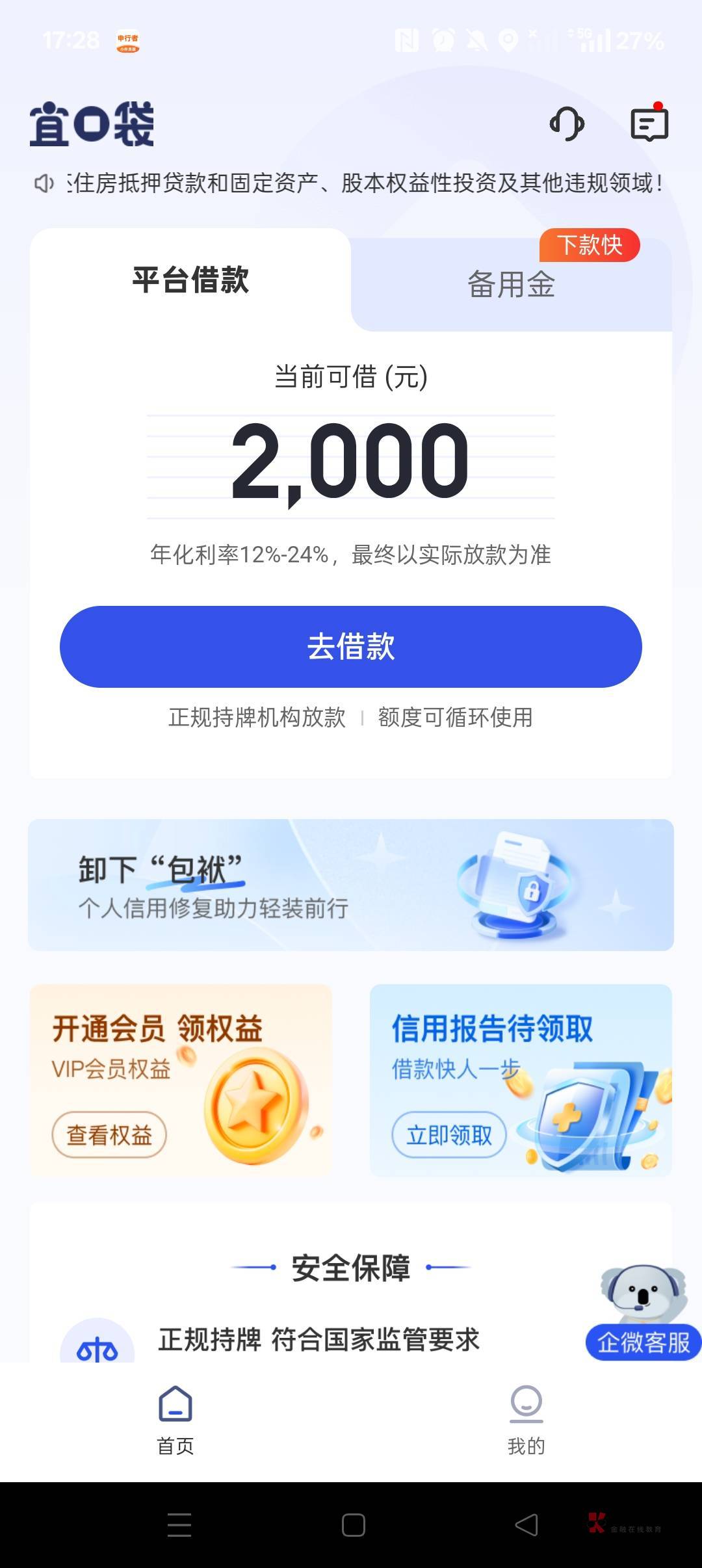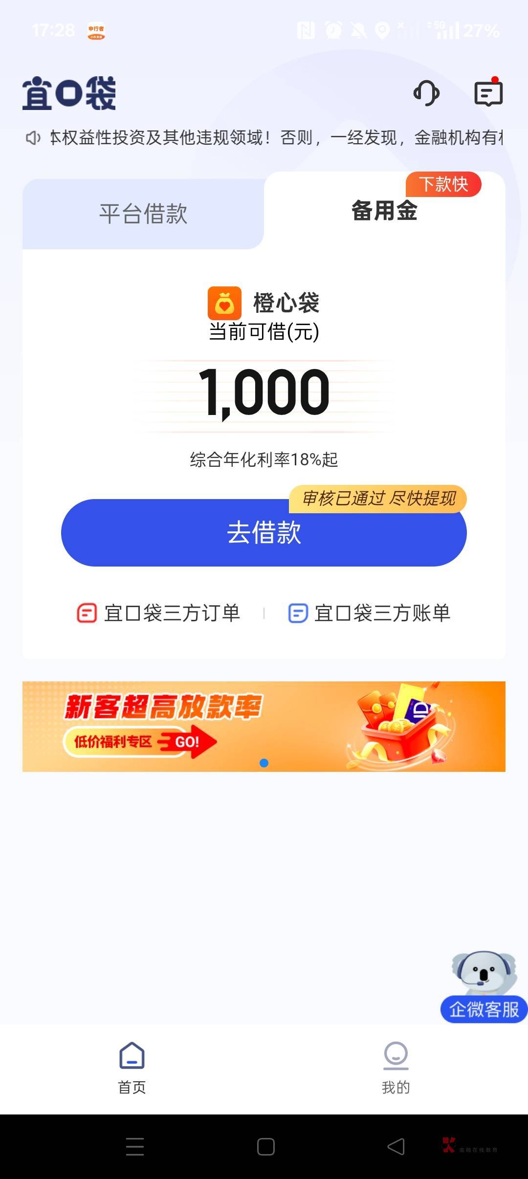 意思这个立减金逾期了备用金才好下?