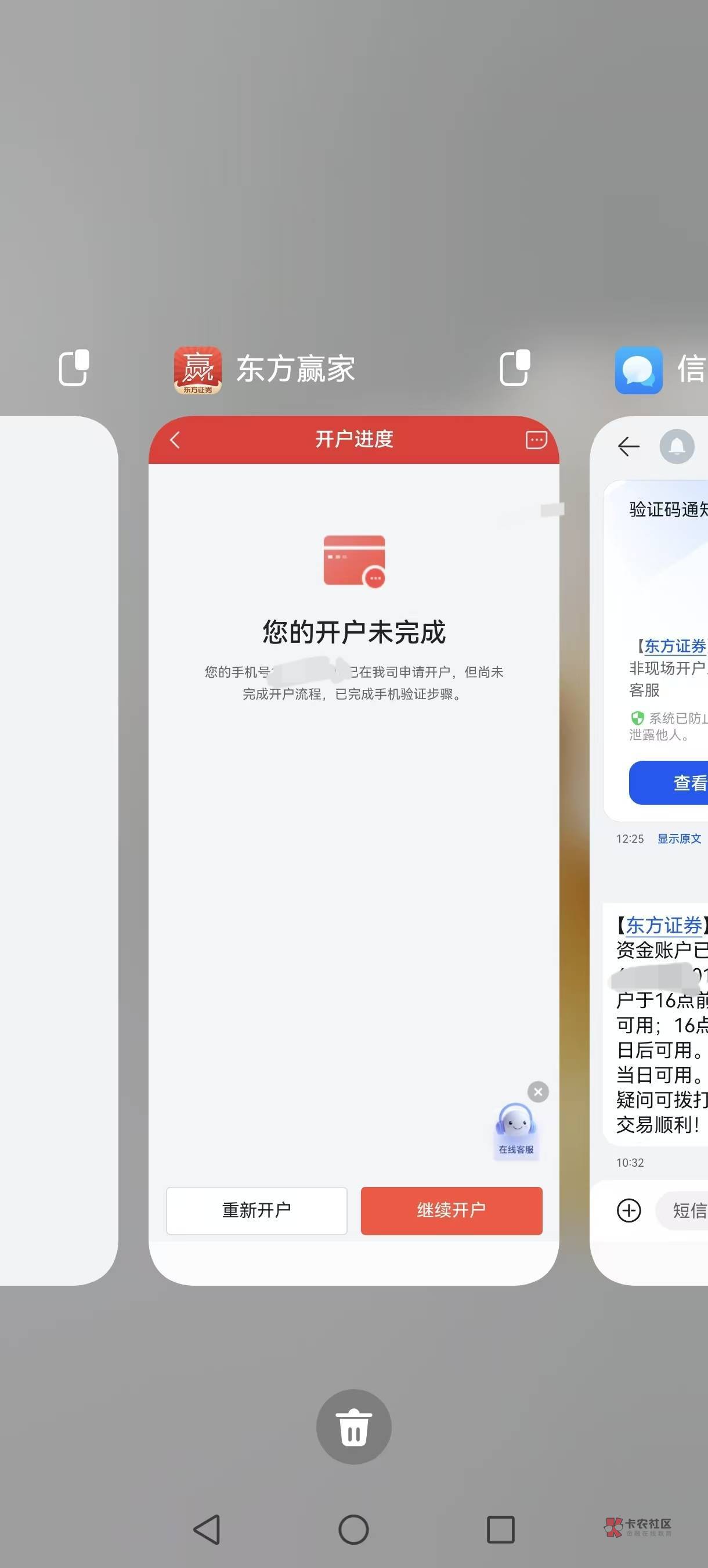 哥们,我也是的他们来短信登录上了,看进度就审核失败,在看一次进度就没了,就是在开户了