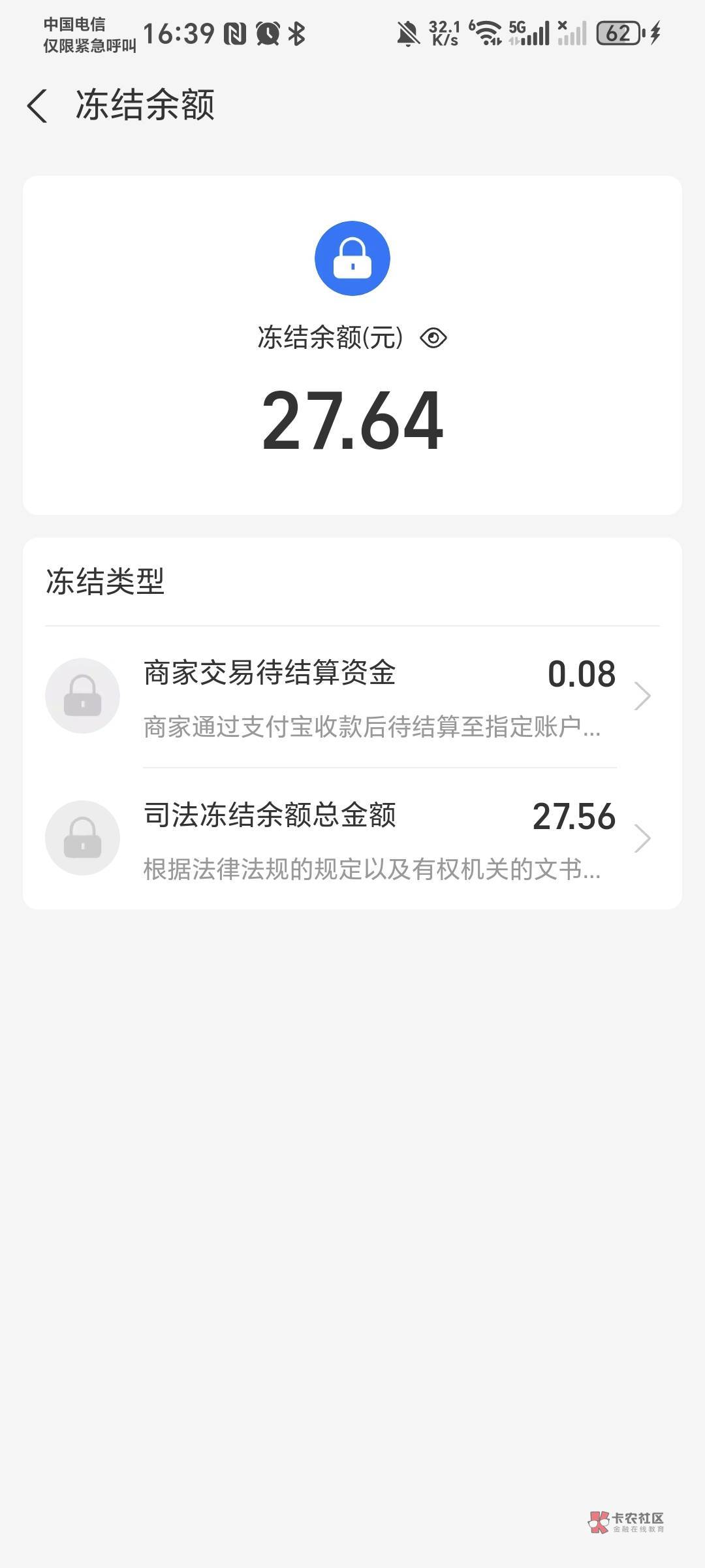 我也是今天执保冻结的,微信算冻结了,支付宝没事